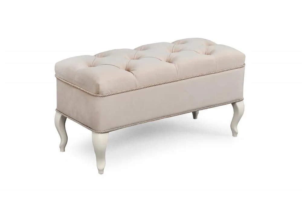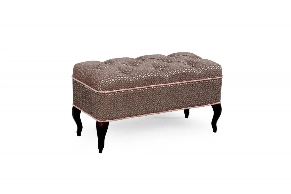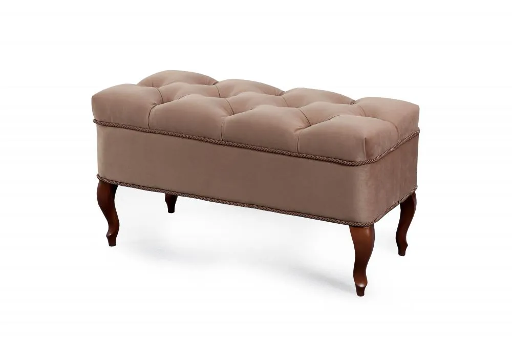 Каретная стяжка на высококачественном велюре, декоративные канты, опоры "кабриоль" из натуральной древесины (береза) сделают банкетку №15 изюминкой Вашего интерьера.