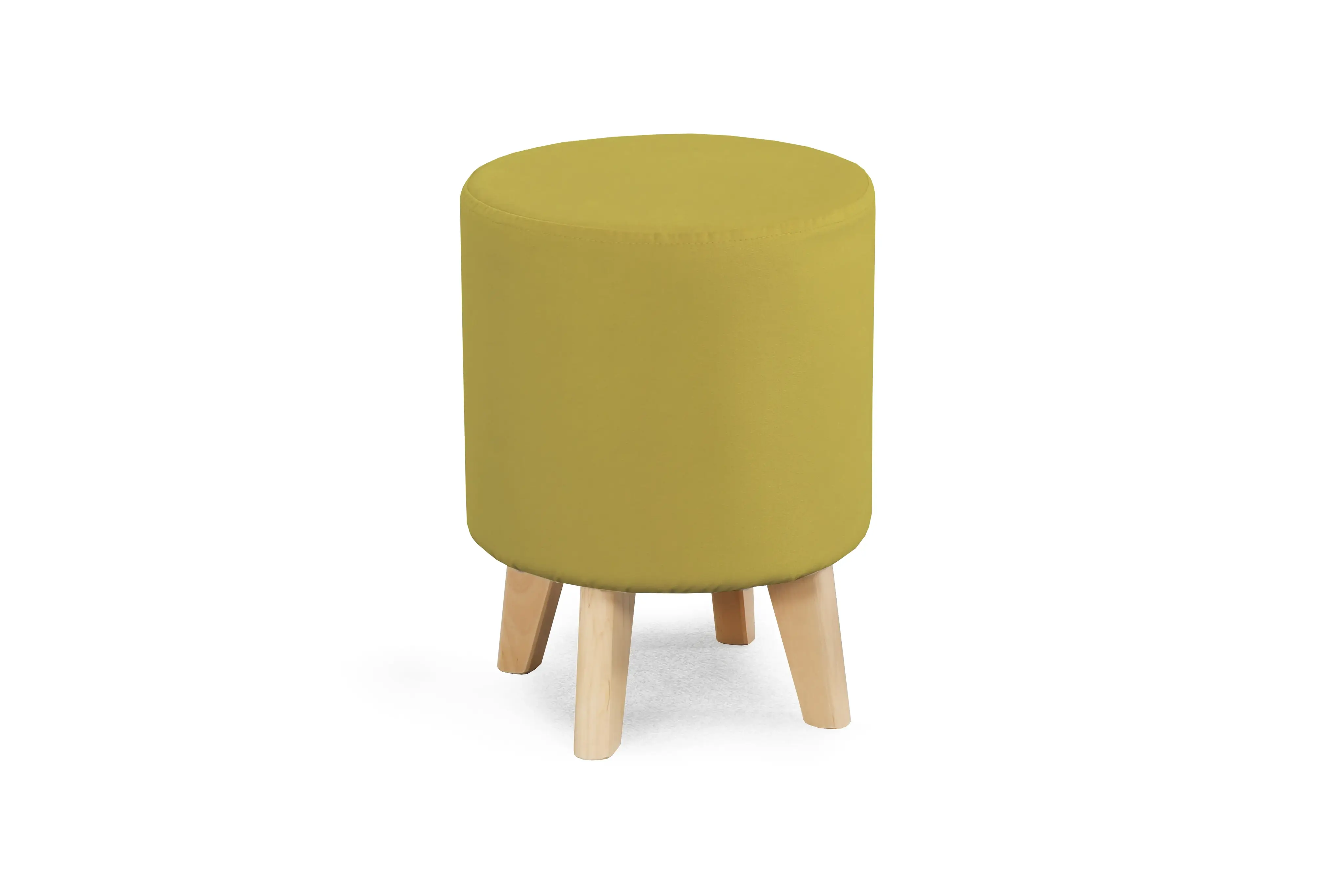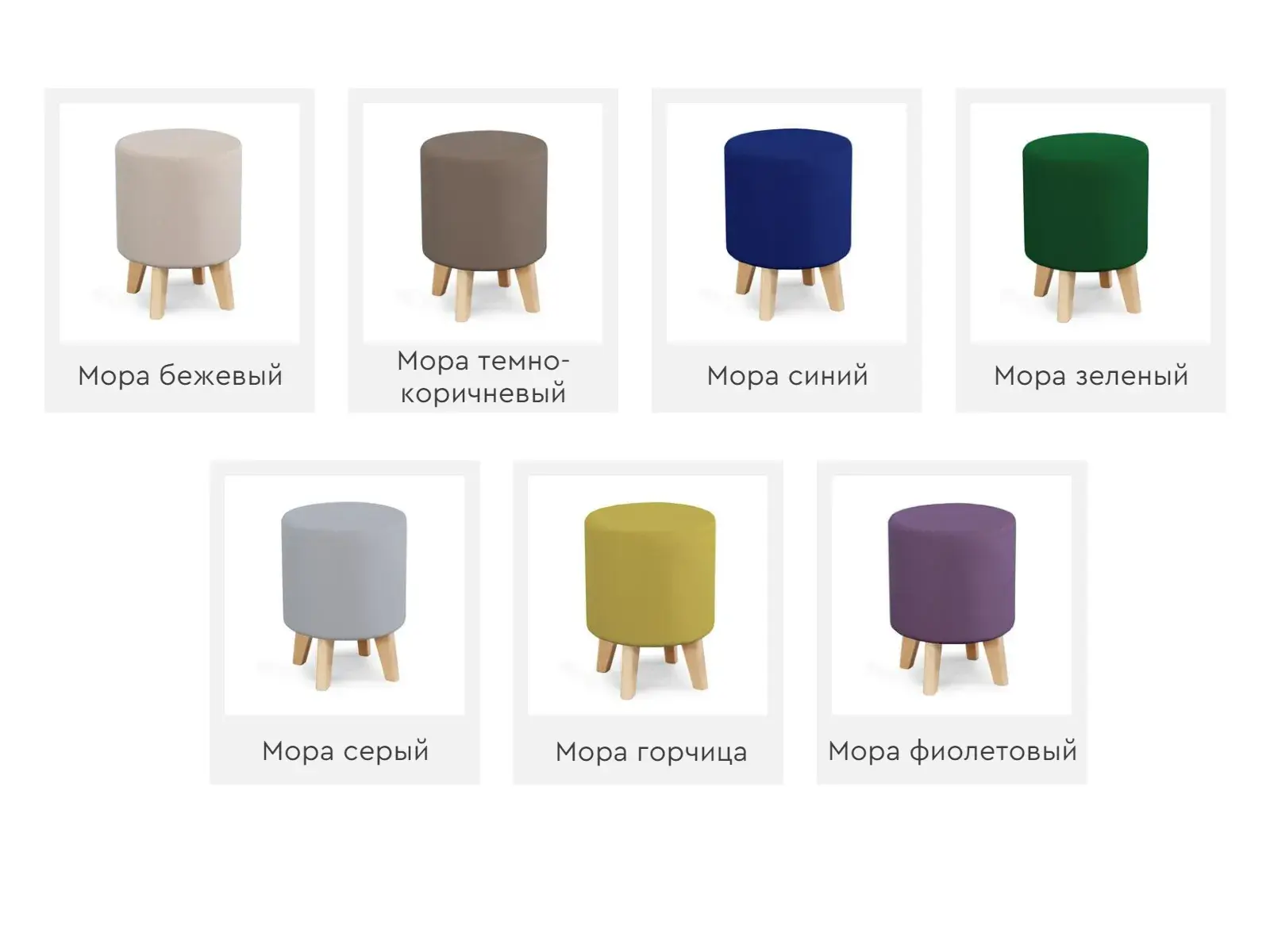 Круглая банкетка на ножках - это удобный и стильный предмет мебели, который может быть использован как место для сидения или как прикроватный пуфик. Она выполнена из ткани, что позволяет ей быть мягкой и удобной для сидения.