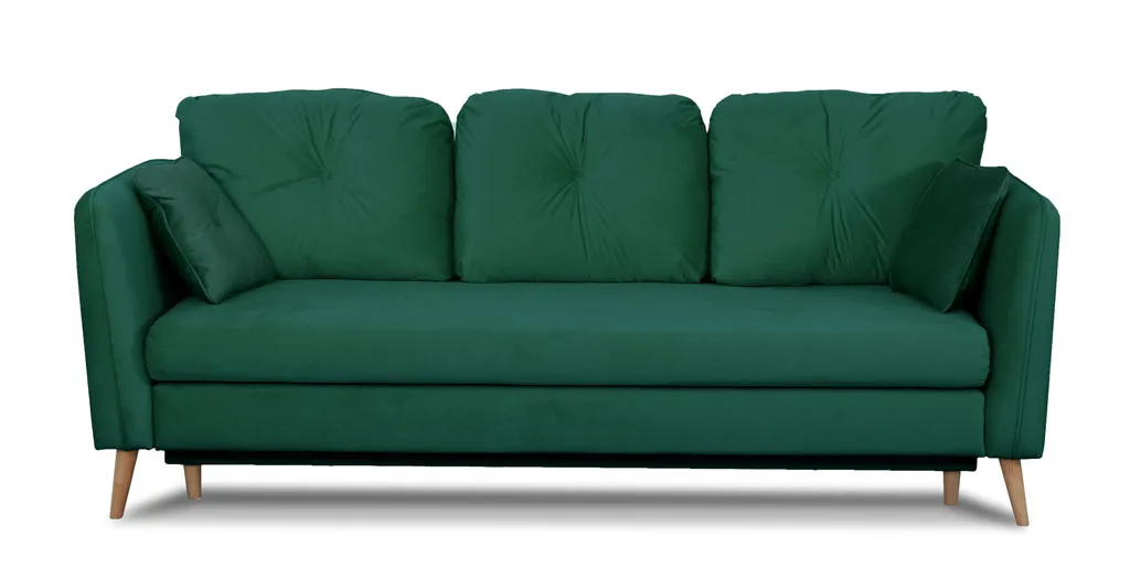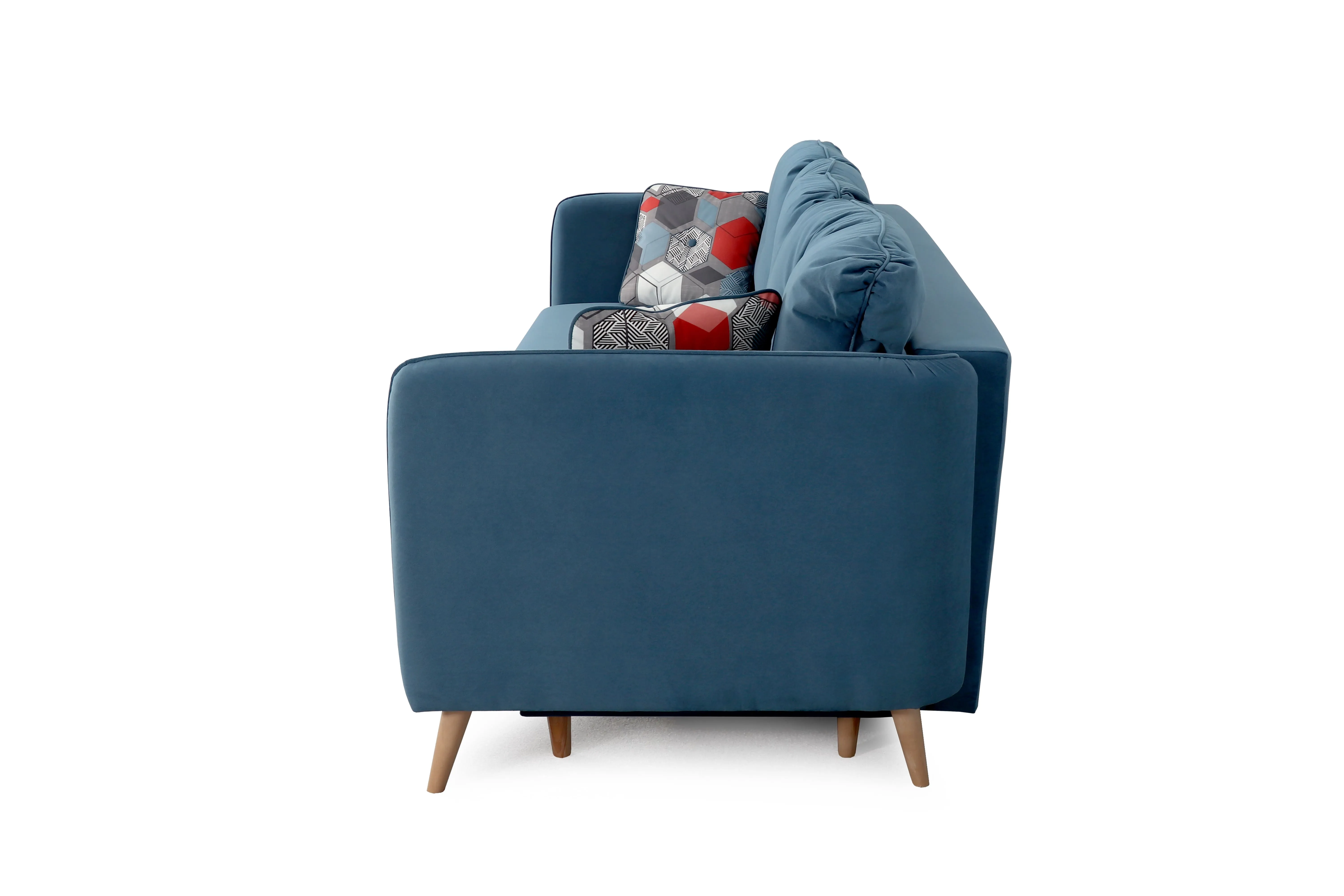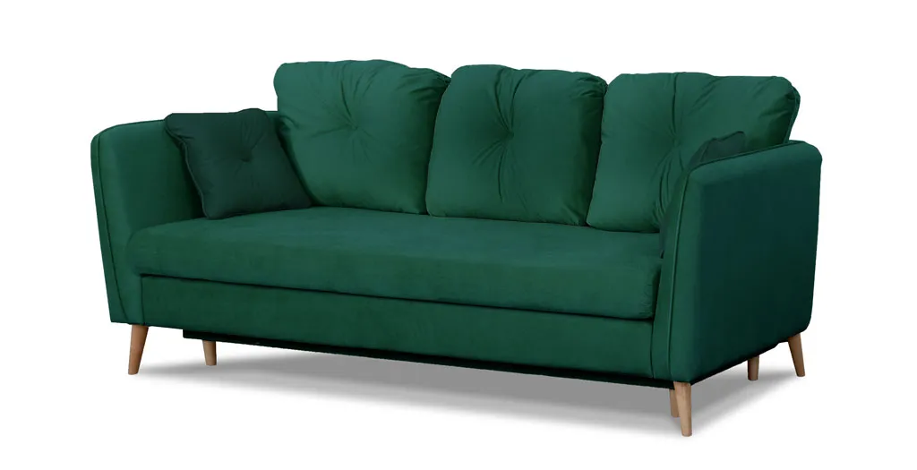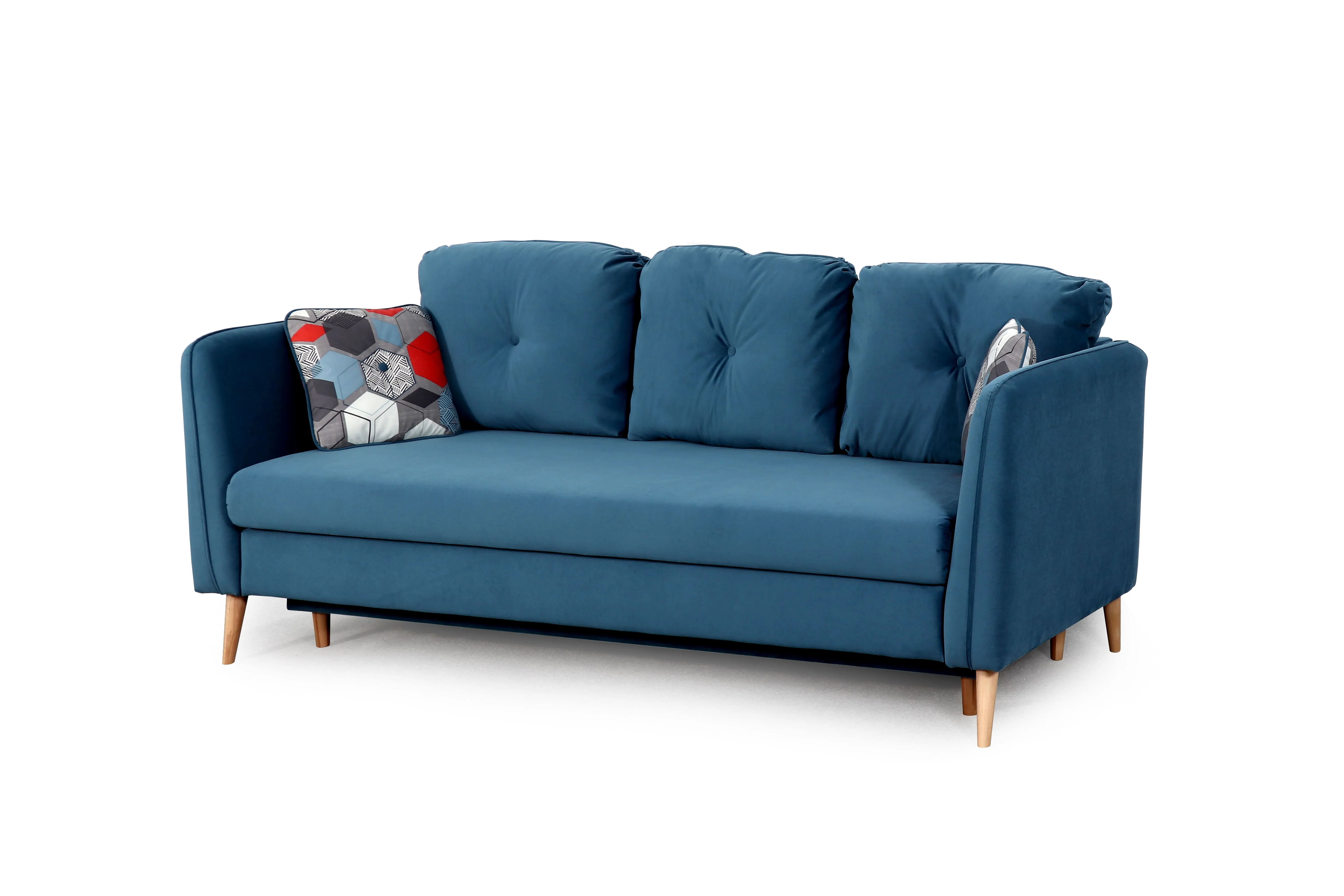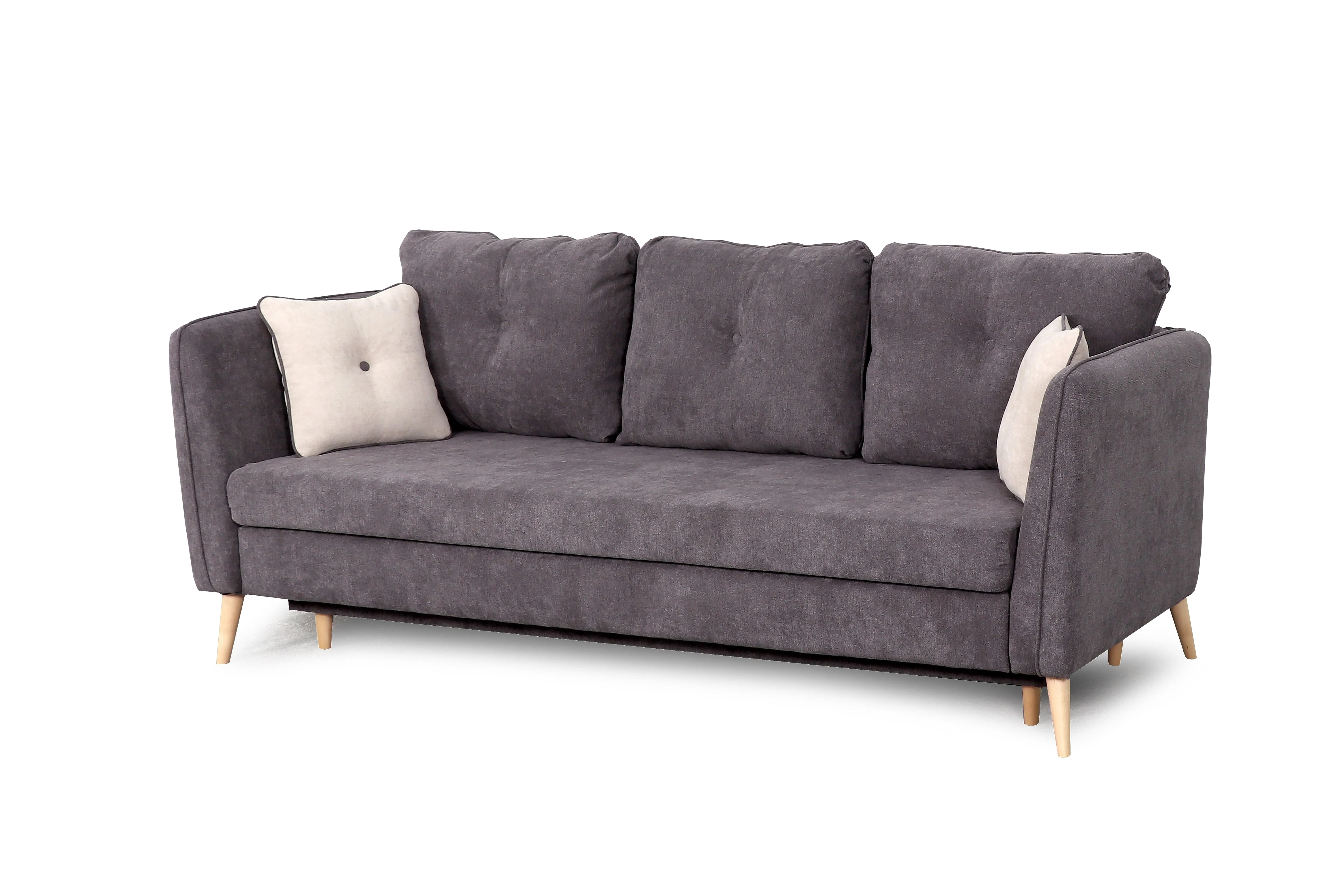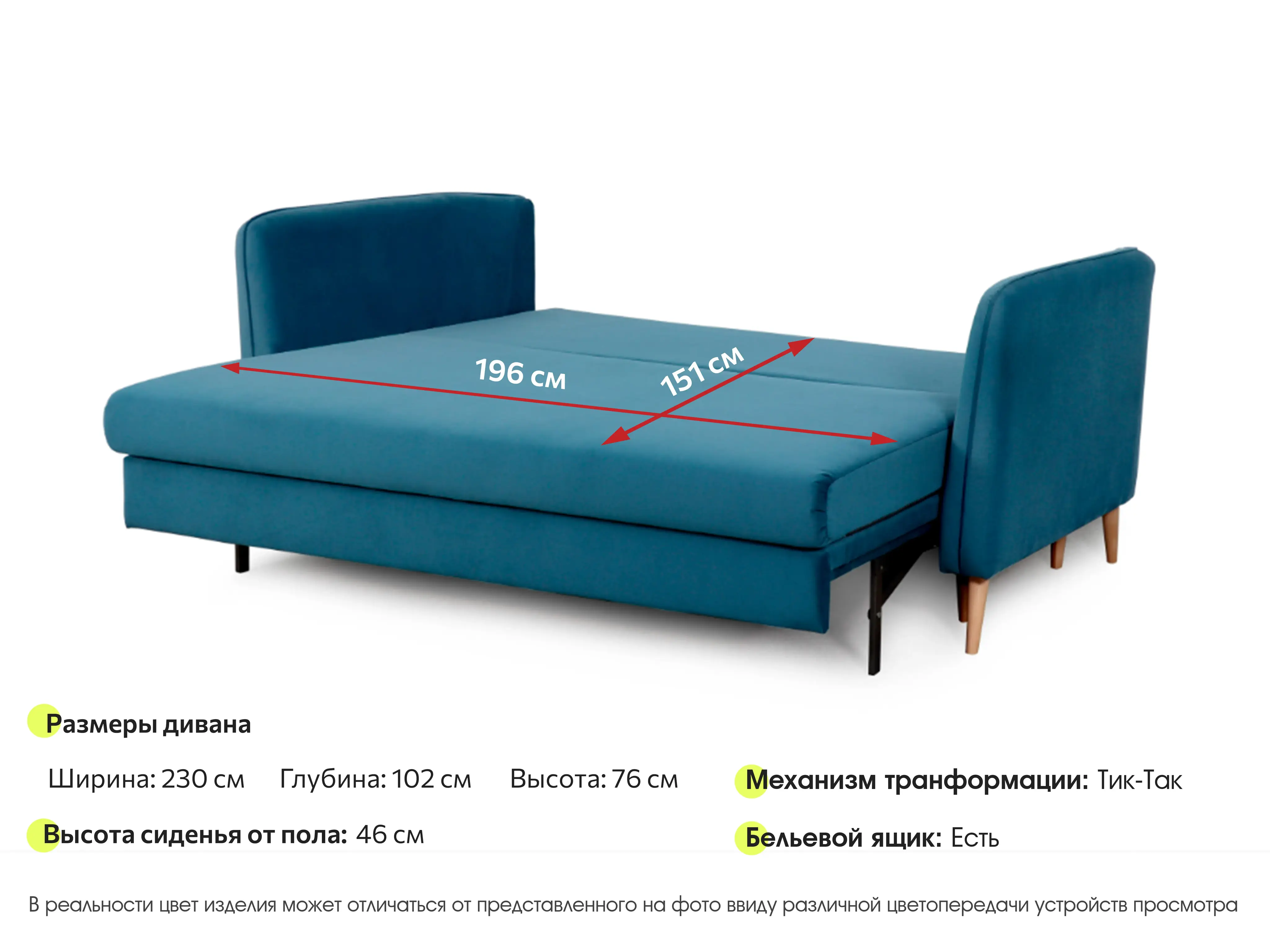 Диван-кровать АНТАЛИЯ 2 выполненный в скандинавском стиле принесет уют и спокойствие в вашу любимую гостиную. Высокие ножки из массива березы придают дивану визуальную лёгкость, декоративные утяжки с пуговицами на подушках украшают изделие, а механизм трансформации "Тик-так" превращает диван в полноценное спальное место размером 196х151 см. Имеется вместительный бельевой ящик.