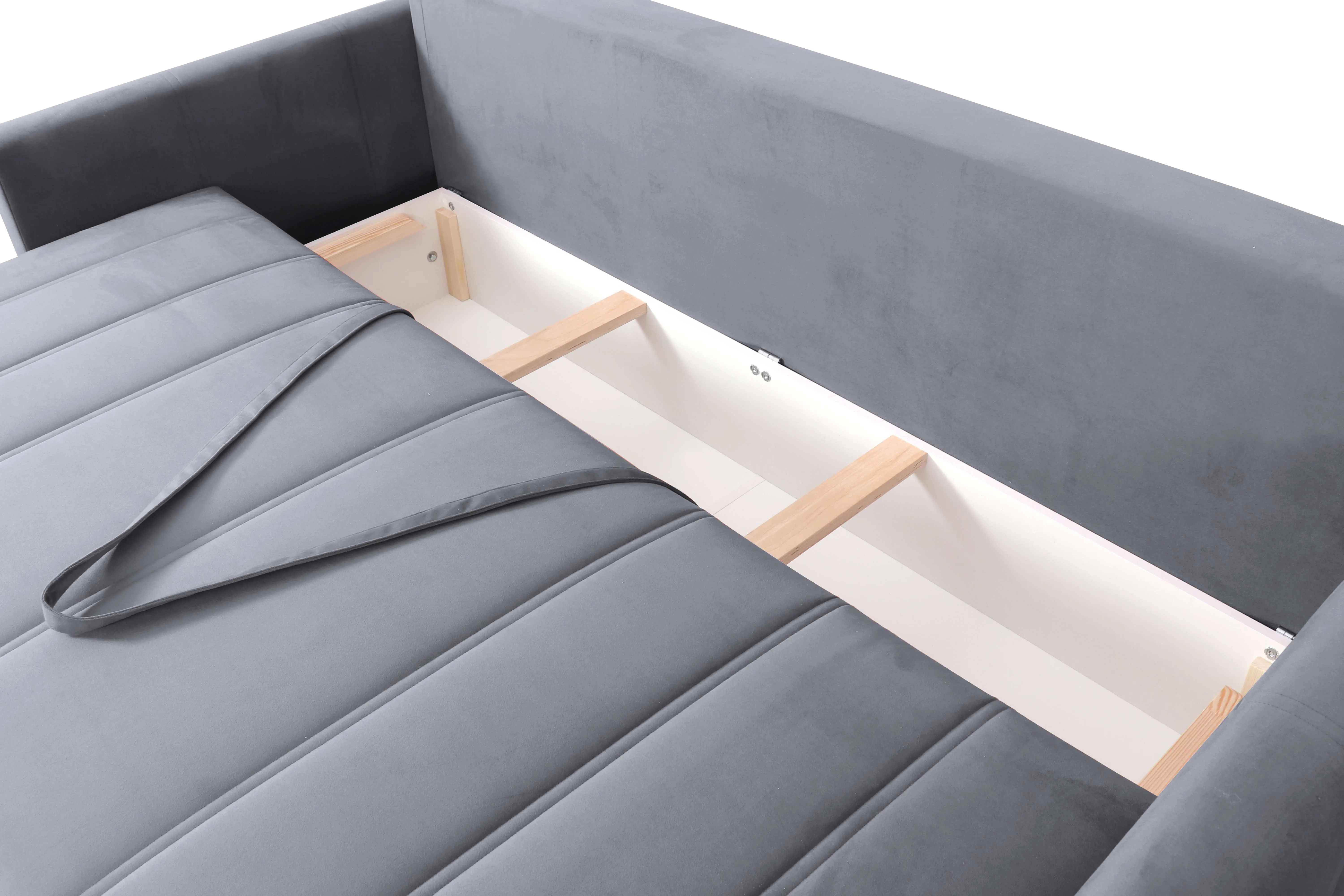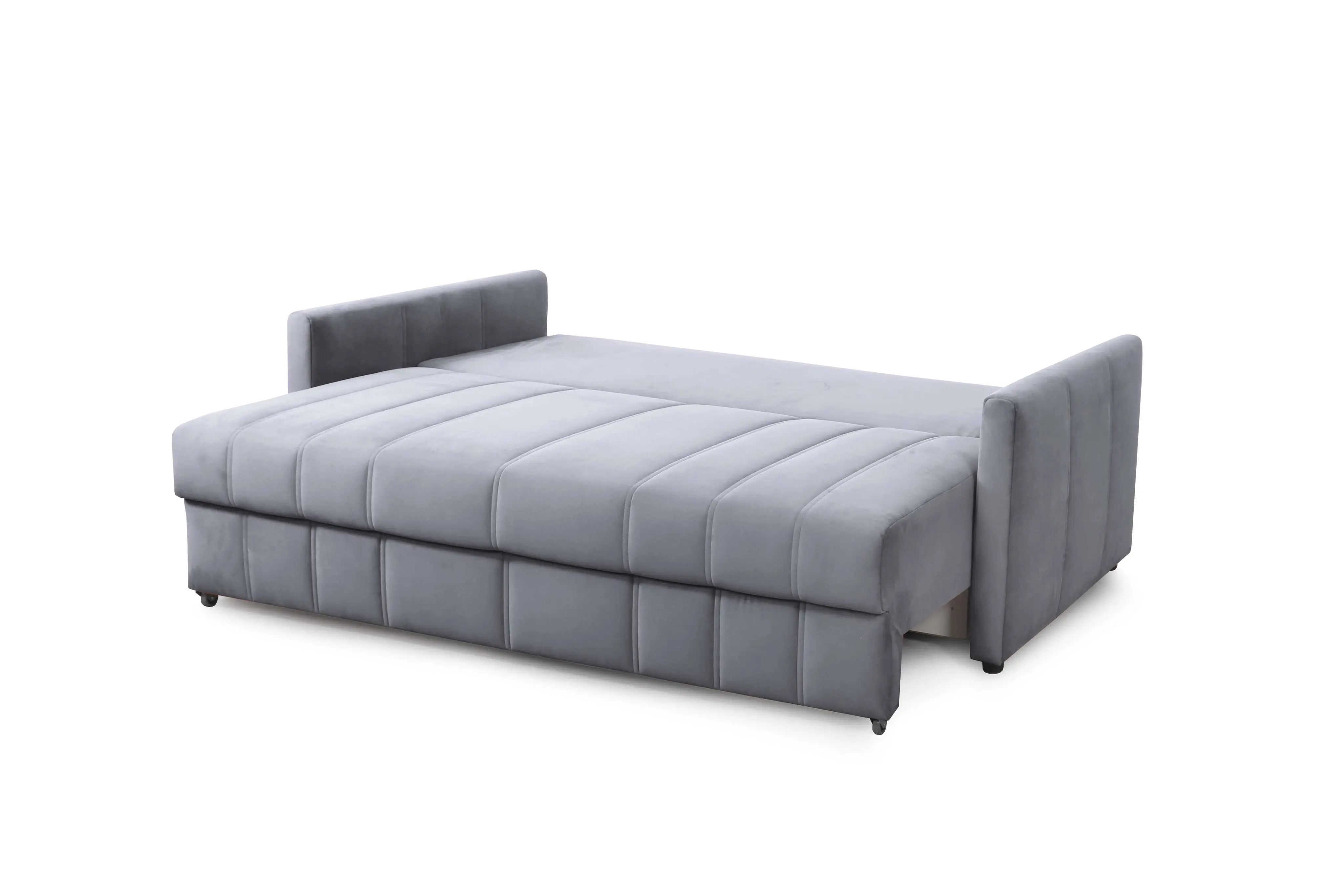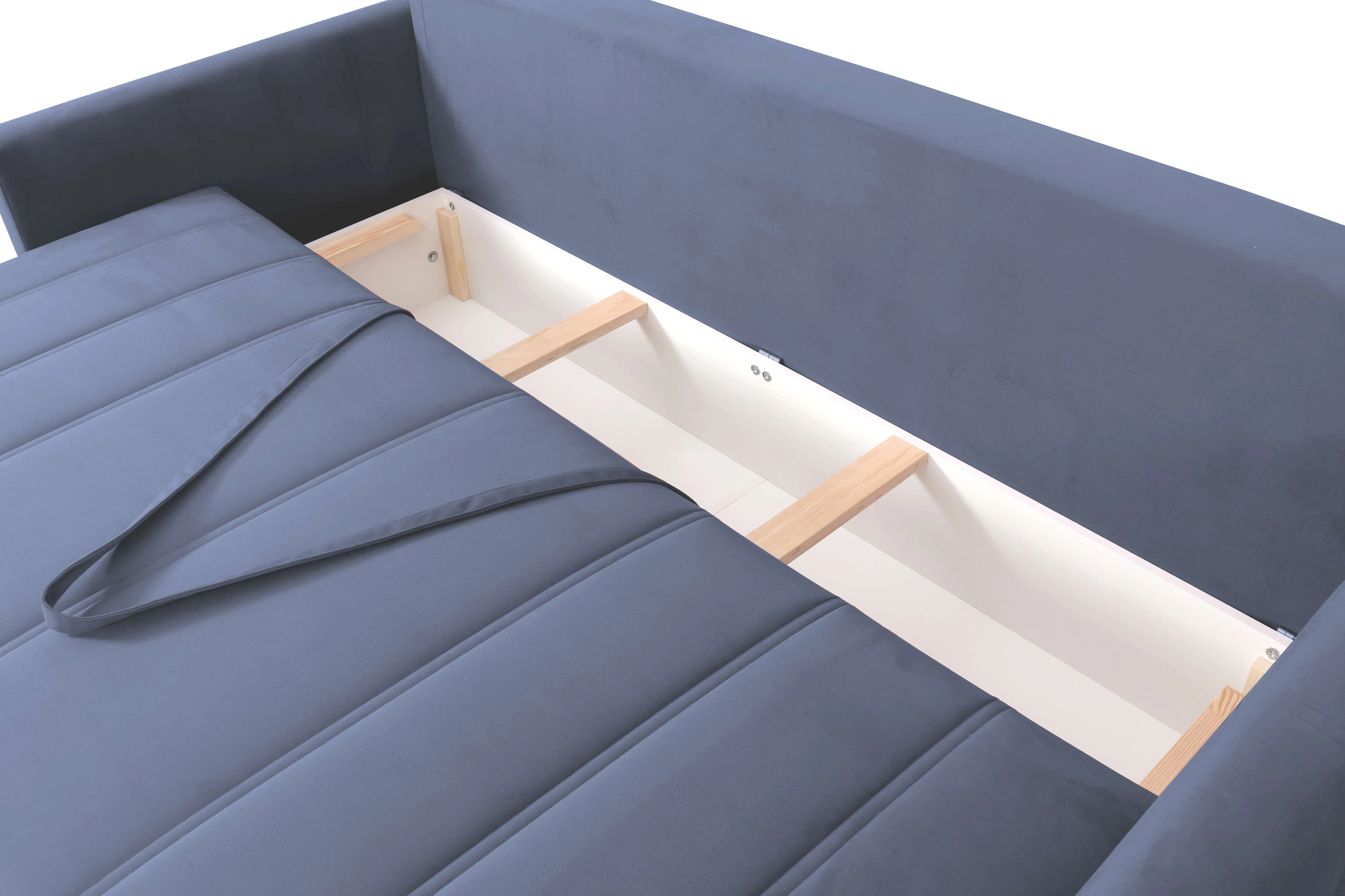 Диван удачно зонирует пространство и дополняет необходимым функционалом. В основании спального места блок независимых пружин для комфортного сна. Вместительный ящик для хранения постельных принадлежностей.