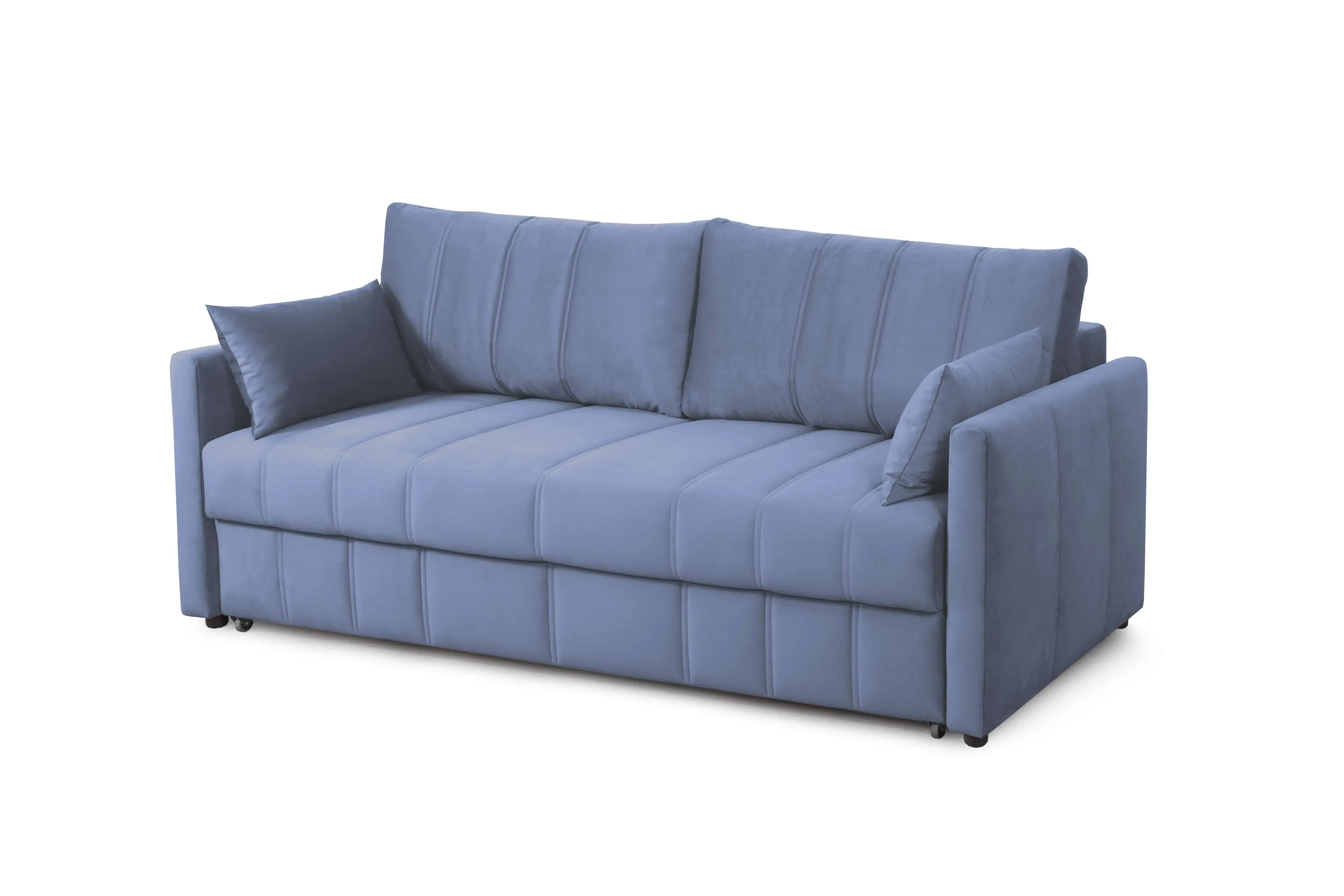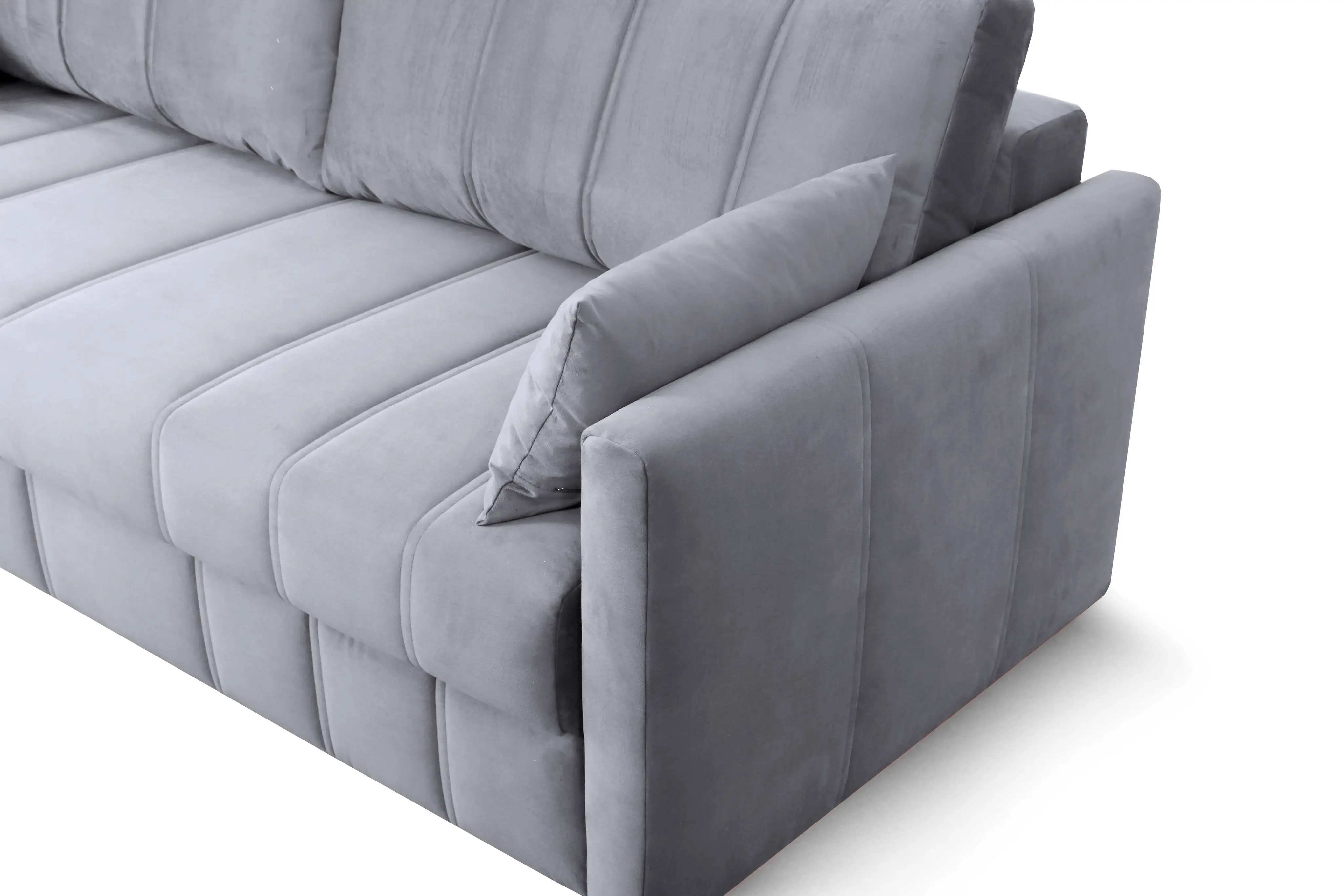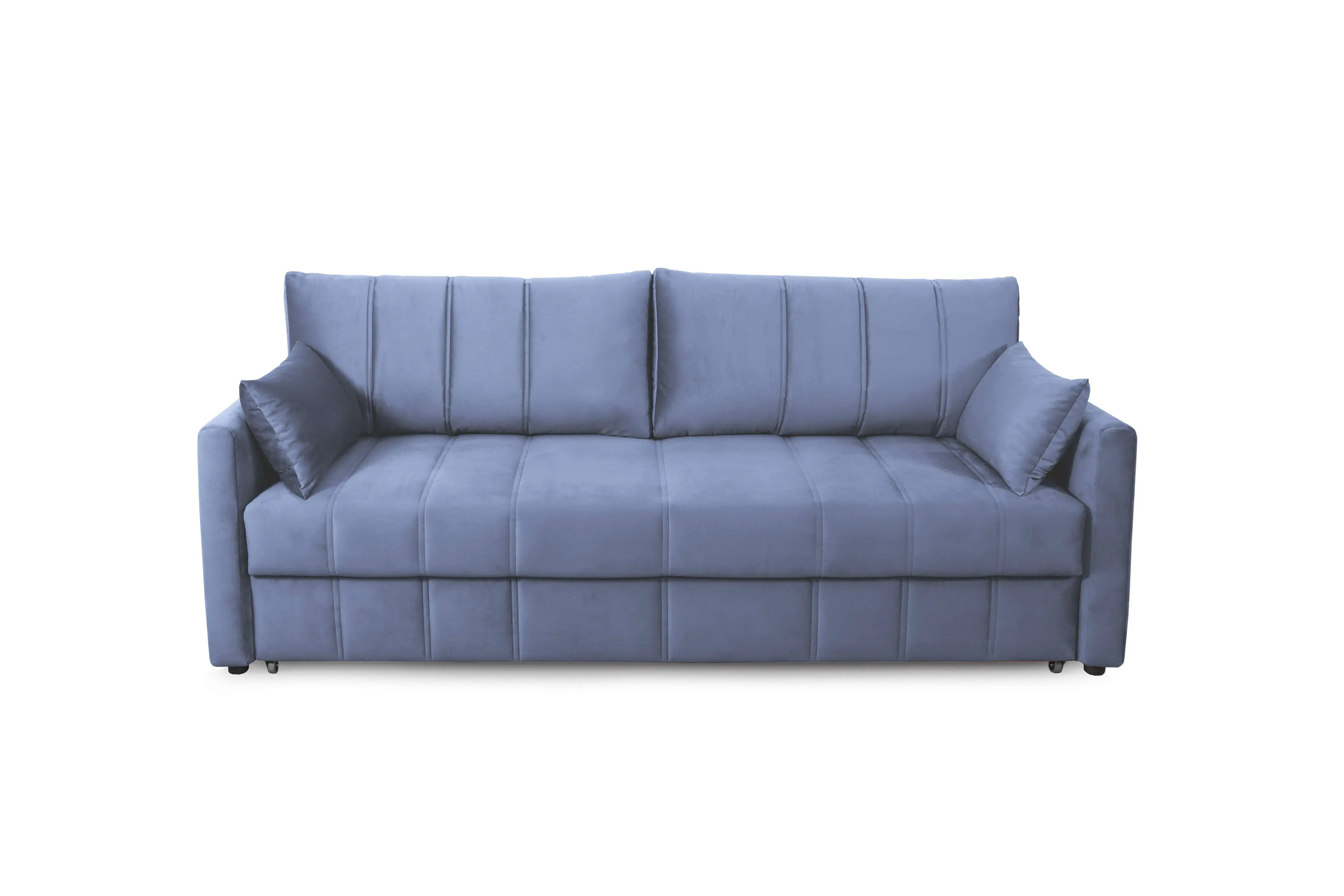 Приспинные подушки, сиденье и подлокотники дивана оформлены модной вертикальной стёжкой в современном стиле.