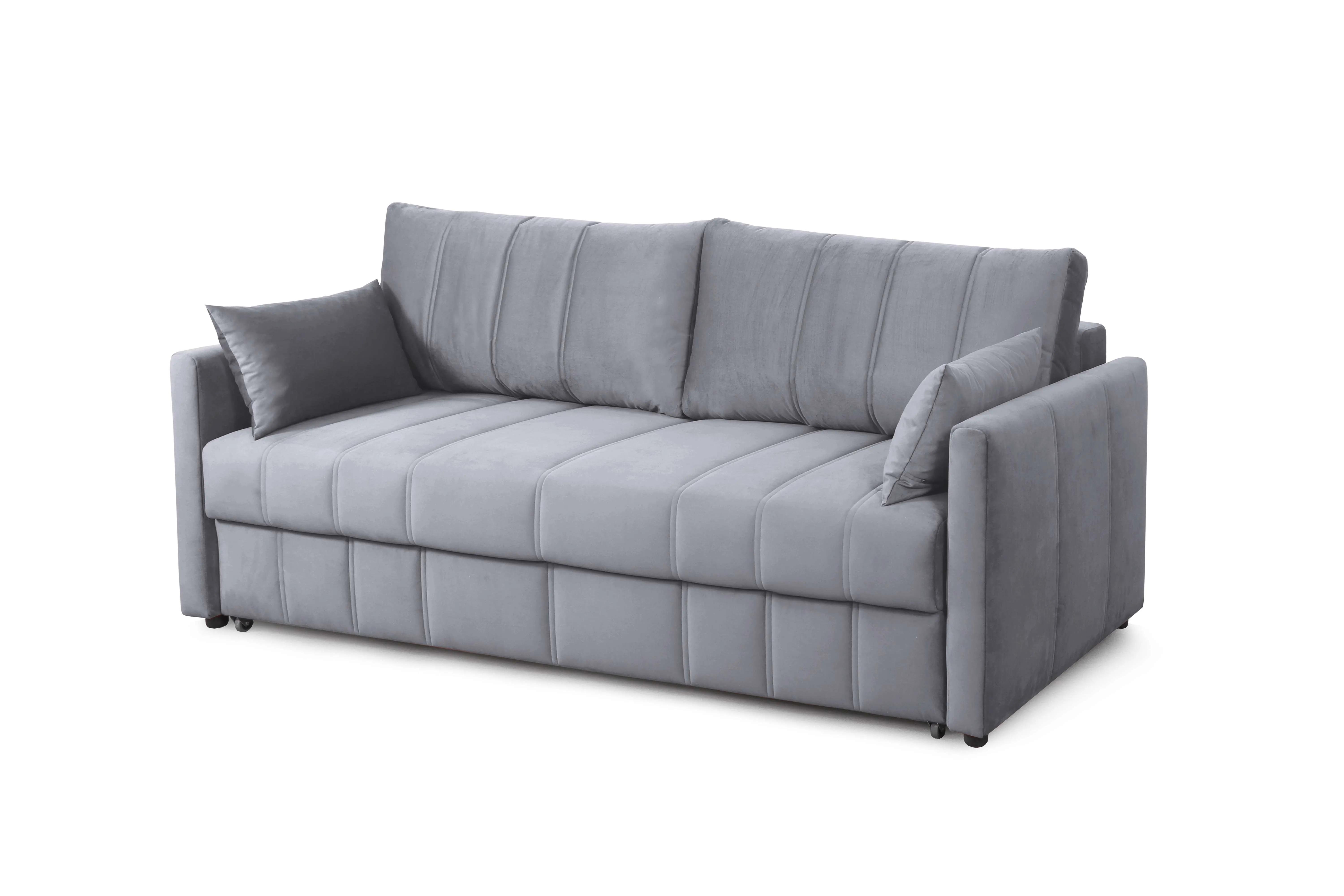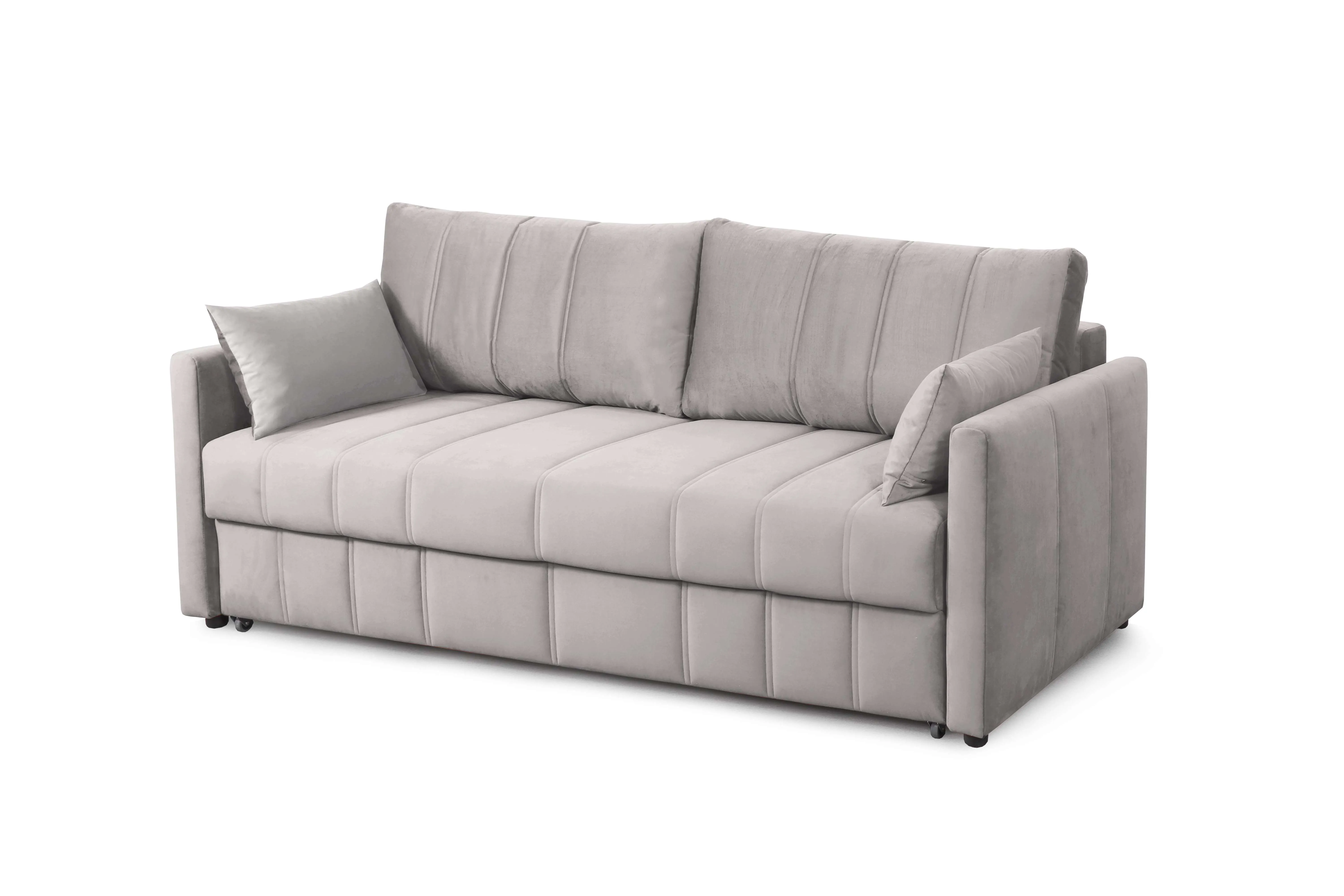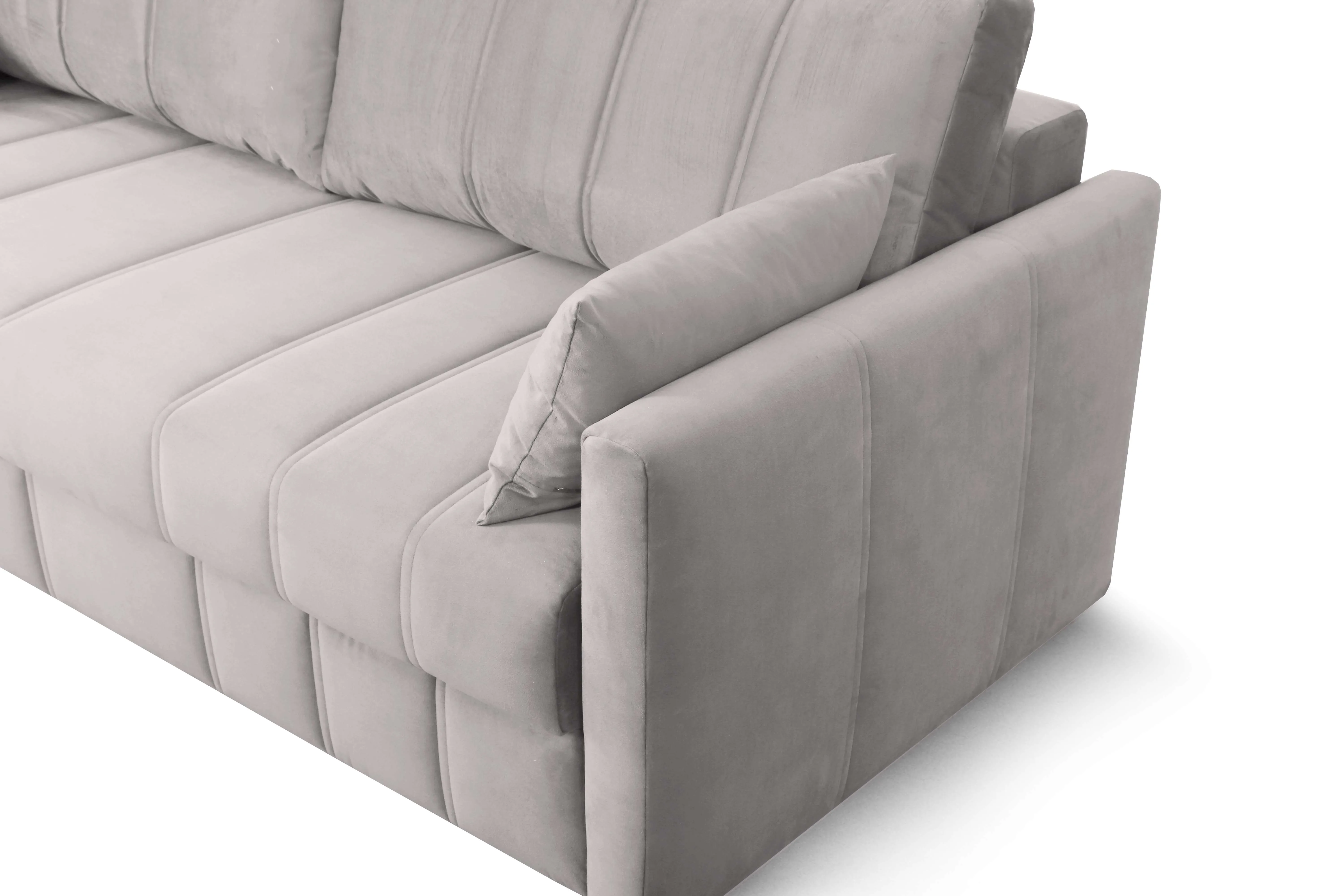 Приспинные подушки, сиденье и подлокотники дивана оформлены модной вертикальной стёжкой в современном стиле.