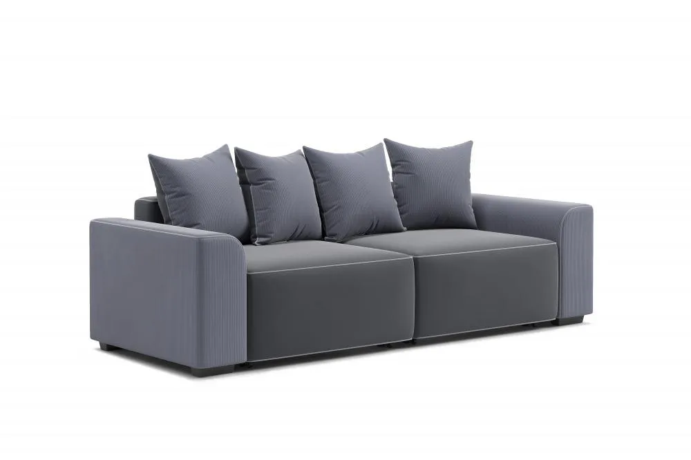 Вельветовая фактура ткани из трендовых 70-х в коллекции Vertical на подлокотниках дивана контрастирует со спокойной фактурой велюровой тканью самого изделия. Ткань не только роскошно выглядит, но еще и практична в эксплуатации, а также имеет отличные показатели износоустойчивости.