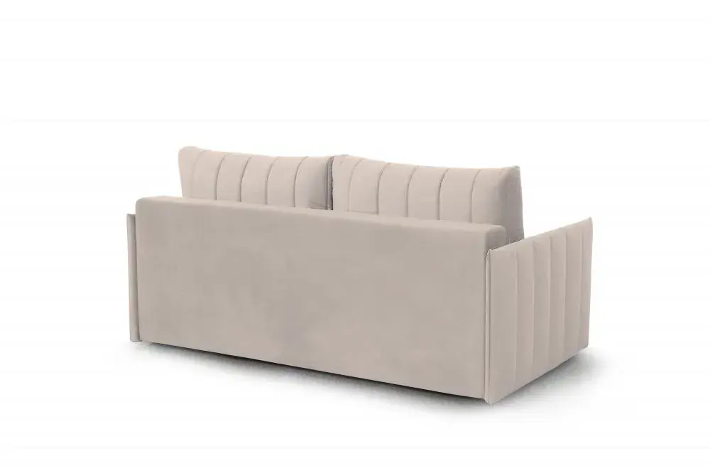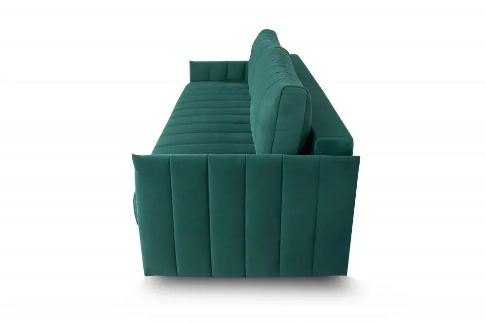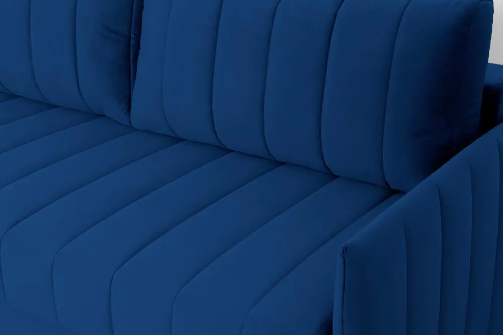 Подушки, сиденье и подлокотники дивана оформлены модной вертикальной стёжкой в современном стиле.