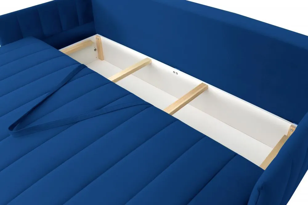 Диван удачно зонирует пространство и дополняет необходимым функционалом. В основании спального места блок независимых пружин для комфортного сна. Вместительный ящик для хранения постельных принадлежностей.