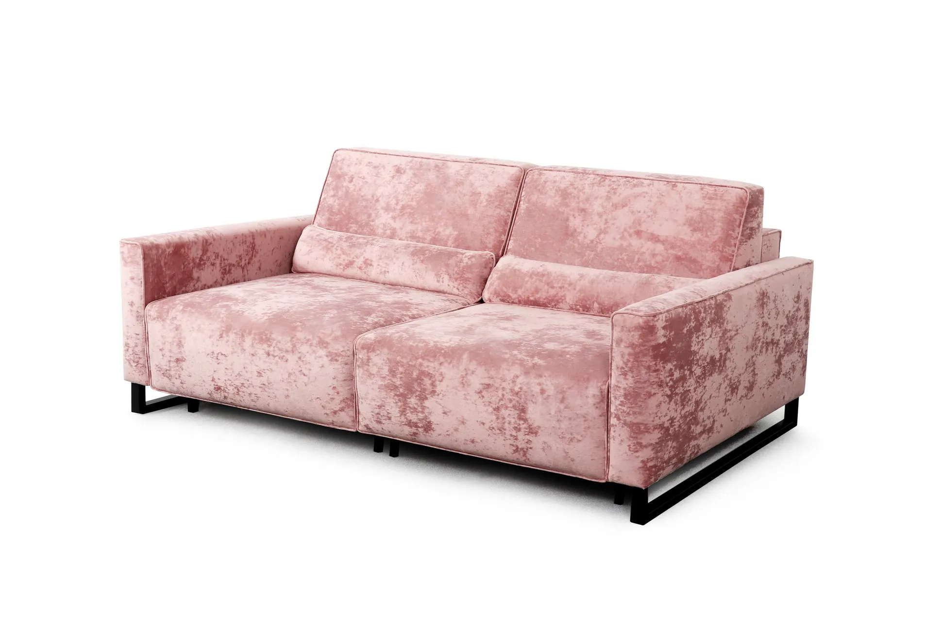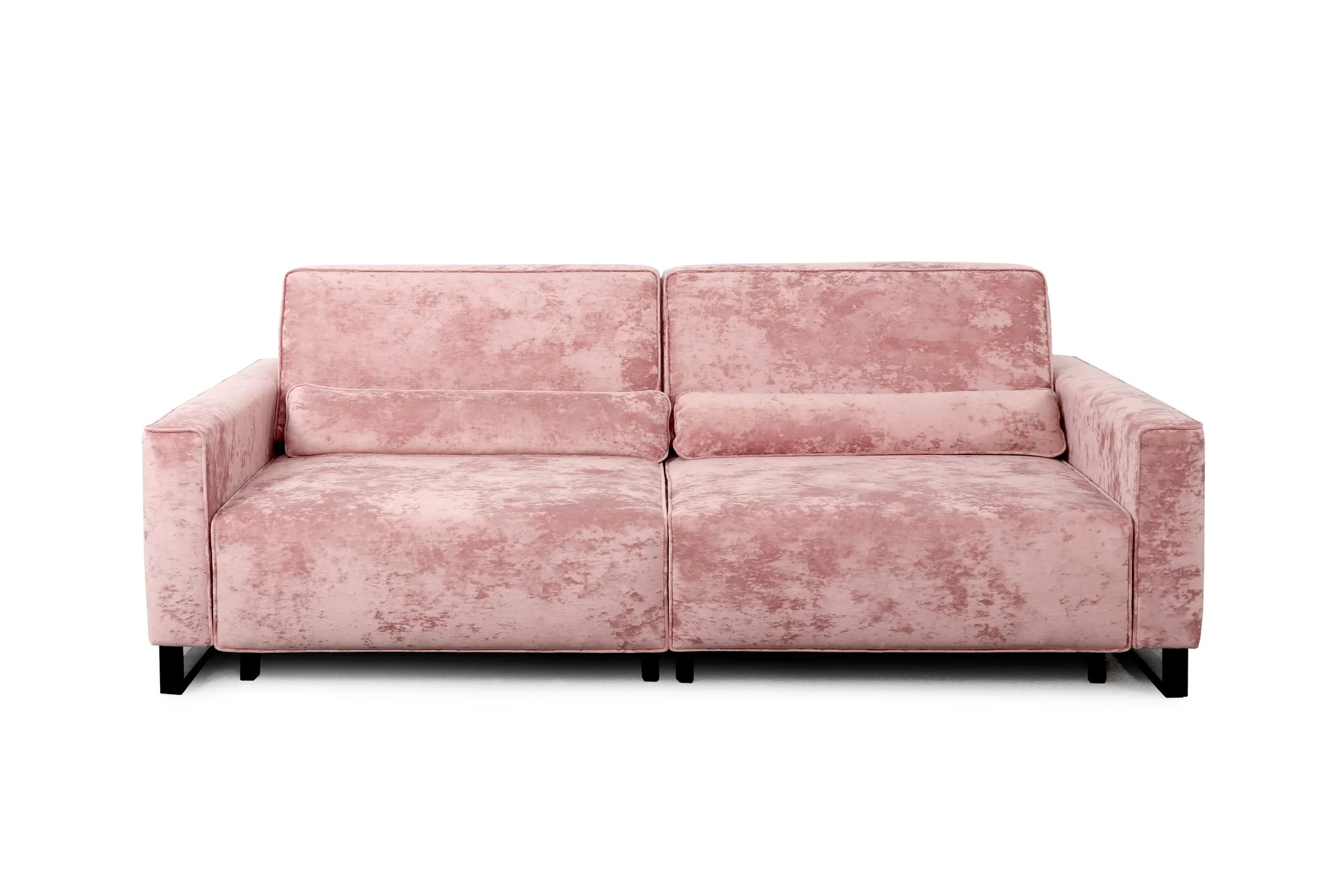 Обивка из велюра не только роскошно выглядит, но еще и практична в эксплуатации, а также имеет отличные показатели износоустойчивости. Высокие опоры из профильной стальной трубы придают дивану особую стилистику, декоративный кант придает изделию законченный вид, помогает сохранить форму и снижает нагрузку на чехол. Поясничные подушки являются дополнительной опорой и служат поддержкой для спины.
