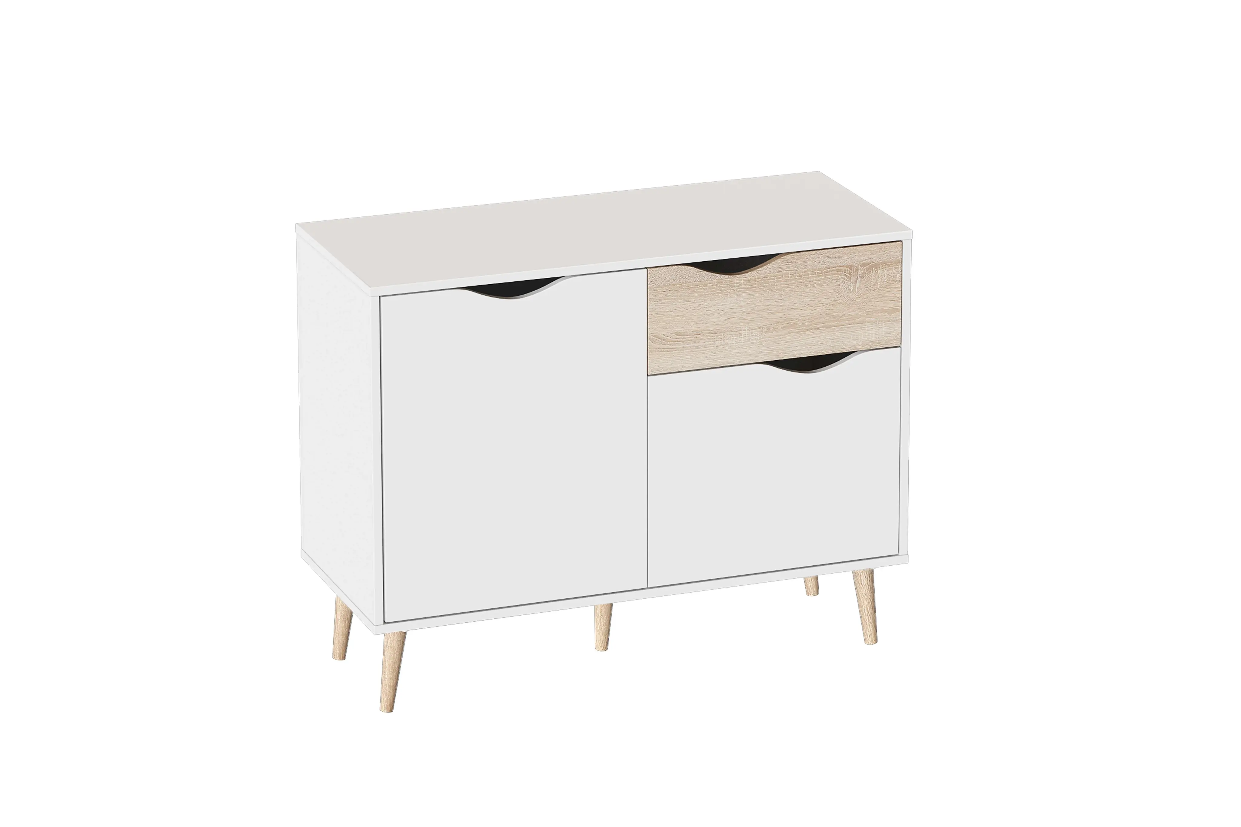 Серия «Соната» отличается простотой и натуральностью, выполнена в естественных тонах. В дизайне отчетливо улавливаются отсылки к скандинавской эстетике: чистые линии корпуса, использование белого цвета в отделке фасадов, расставленные в стороны высокие стильные опоры, выполненные из массива березы.