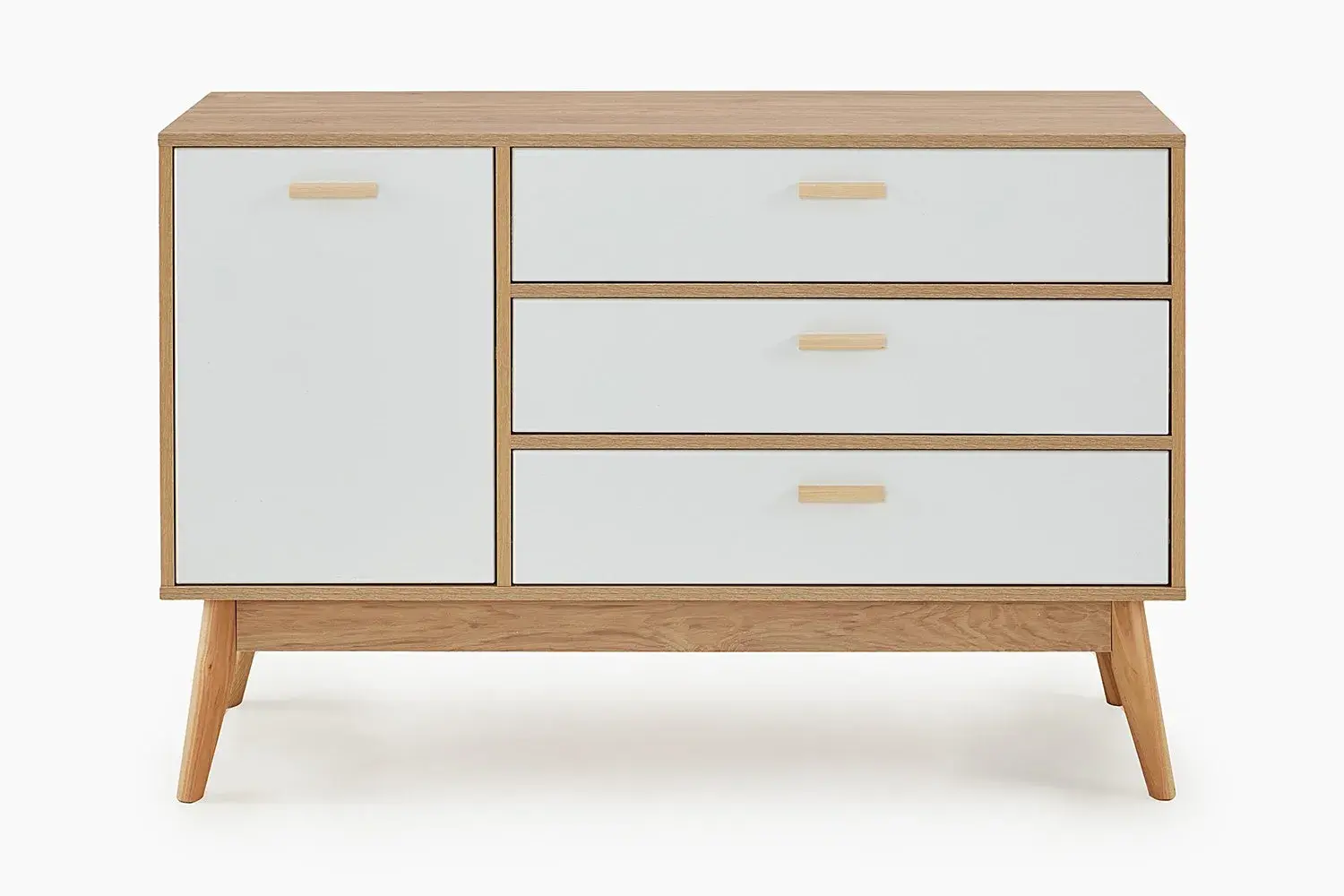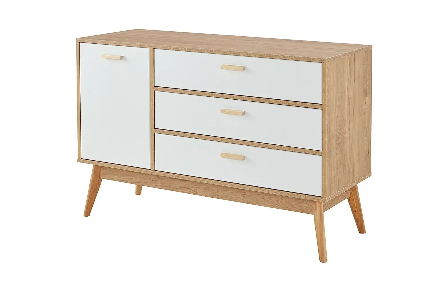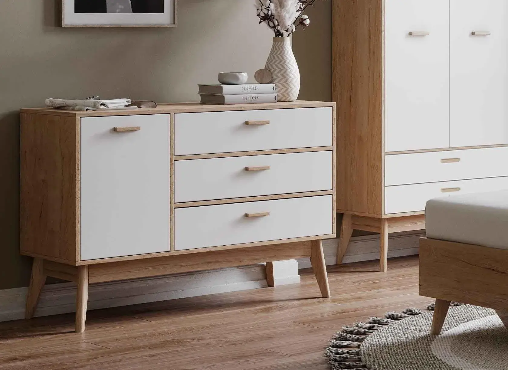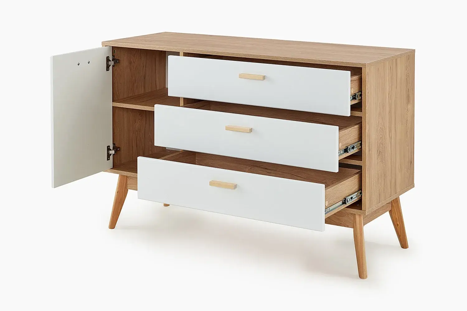 Привлекающий внимание легкостью и комфортом в использовании, комод Калгари не только украсит Ваш любимый скандинавский интерьер, но и порадует Вас своей функциональностью. Слева расположена дверь, справа три выдвижных ящика.