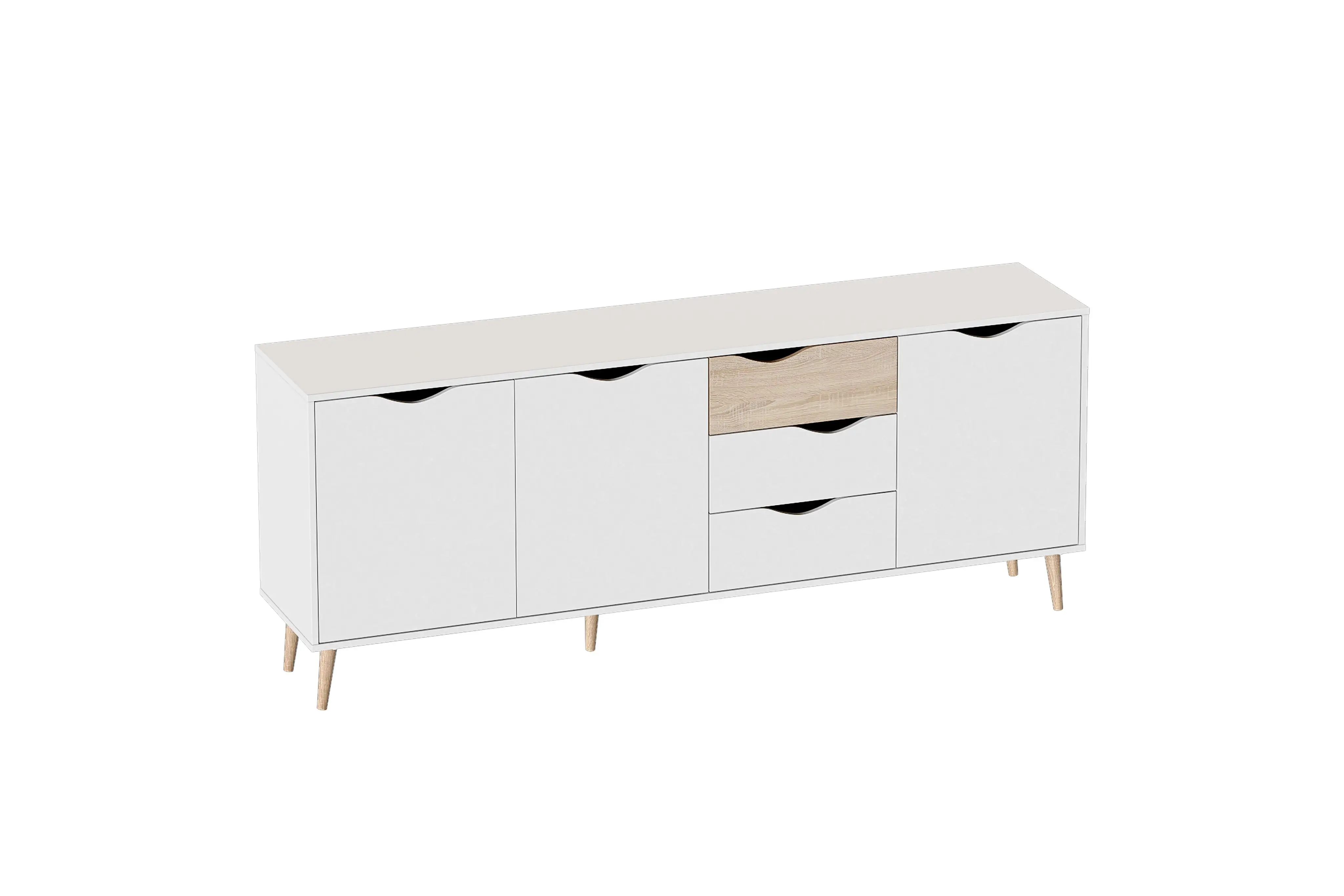 Серия «Соната» отличается простотой и натуральностью, выполнена в естественных тонах. В дизайне отчетливо улавливаются отсылки к скандинавской эстетике: чистые линии корпуса, использование белого цвета в отделке фасадов, расставленные в стороны высокие стильные опоры, выполненные из массива березы.