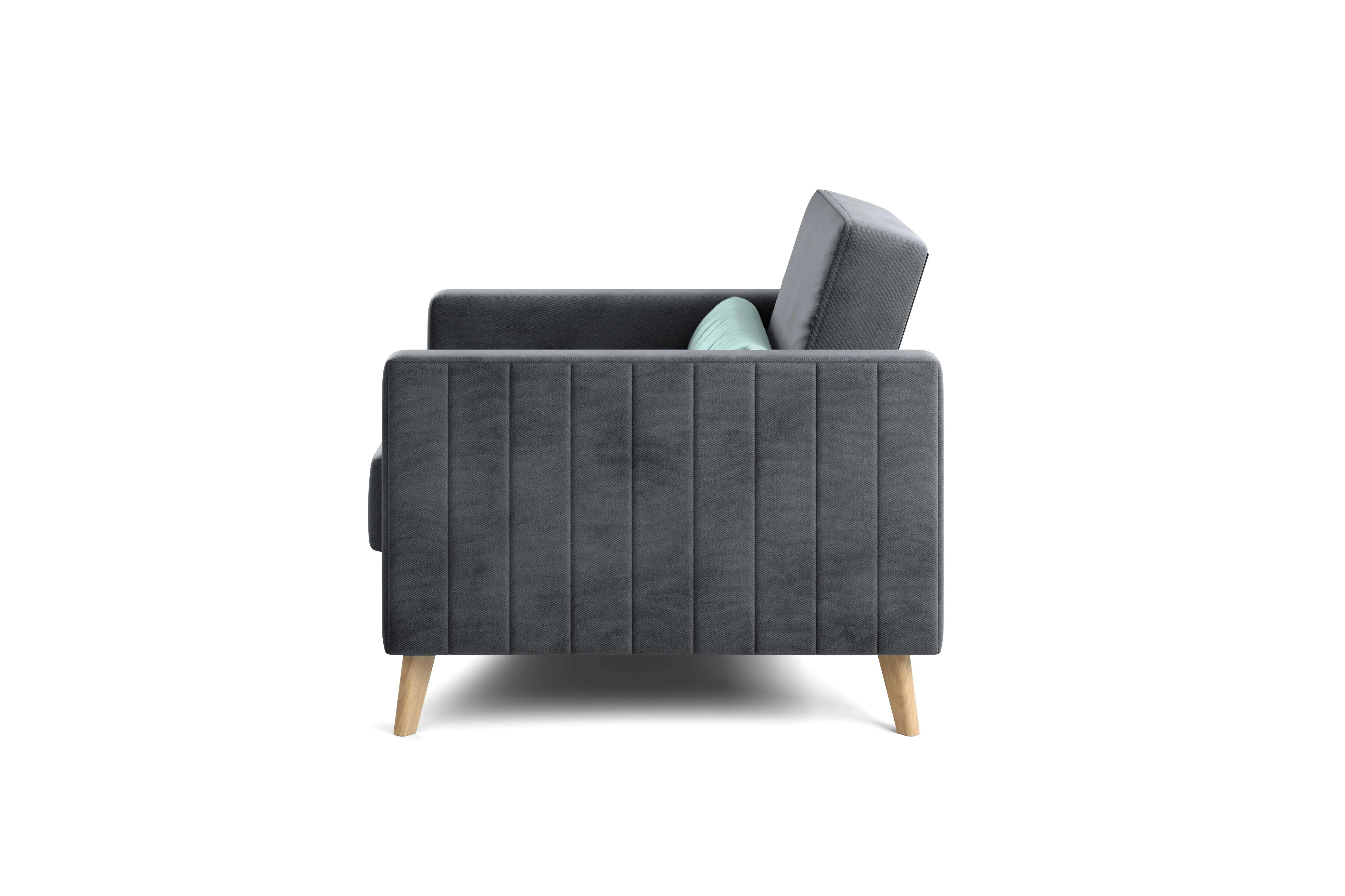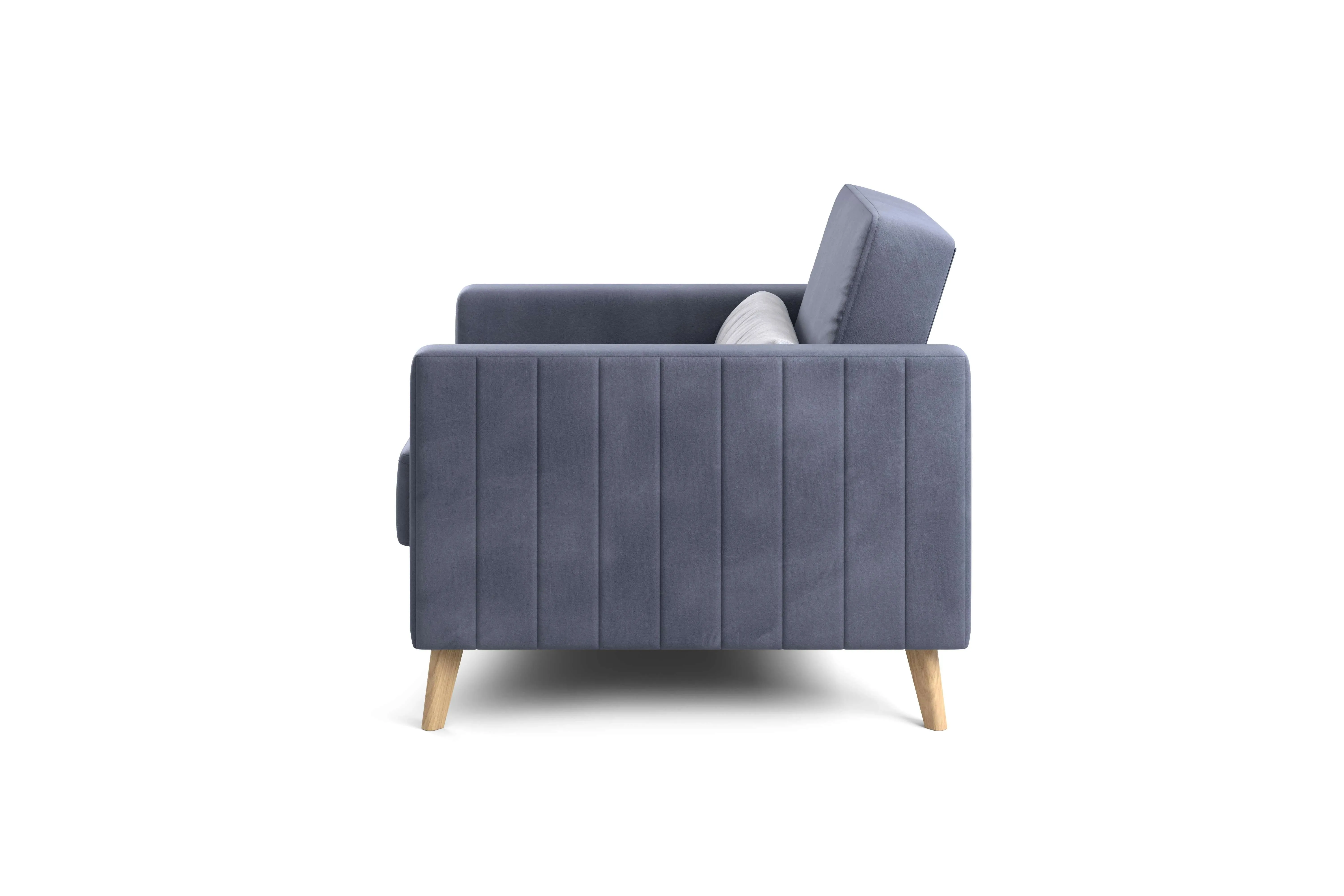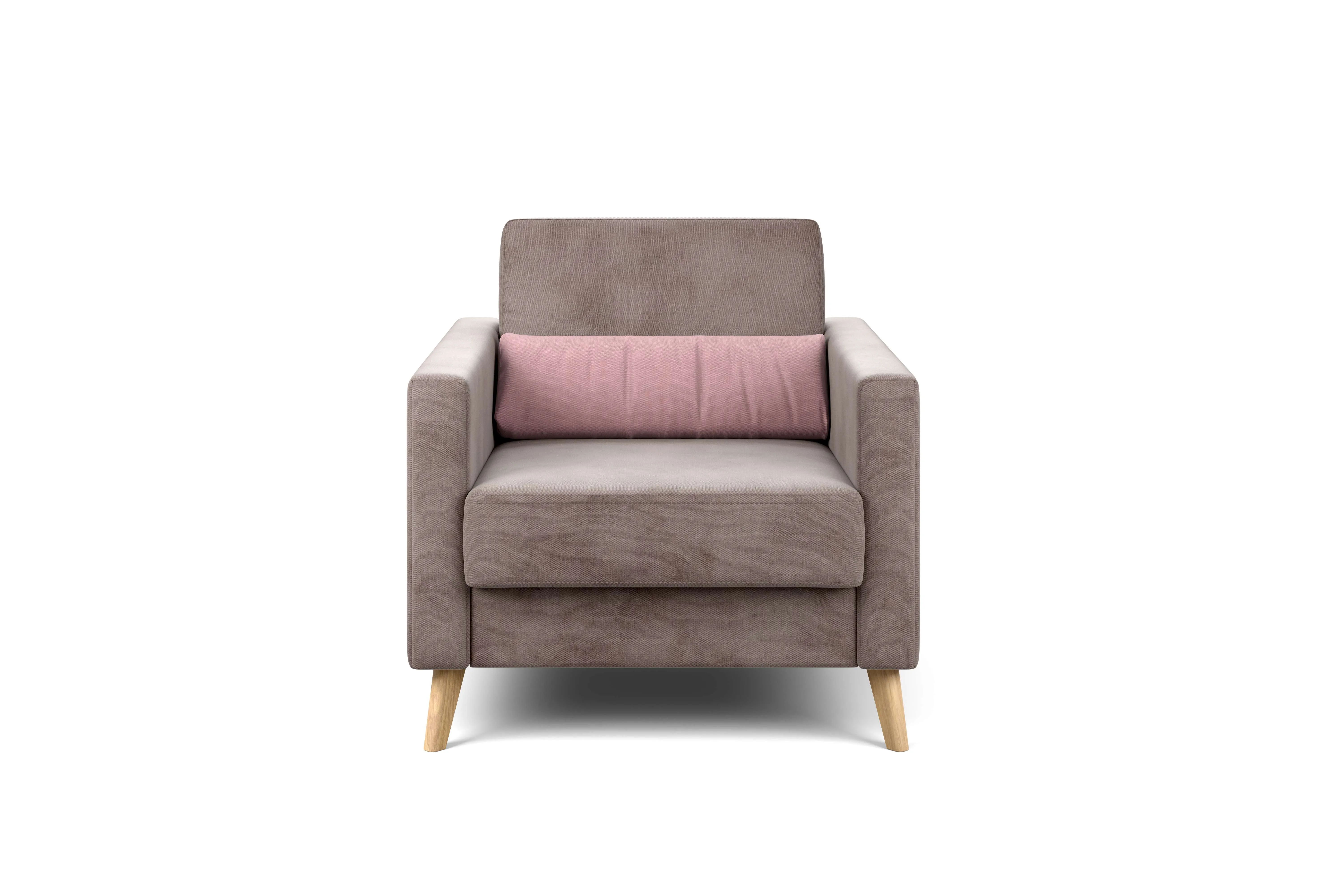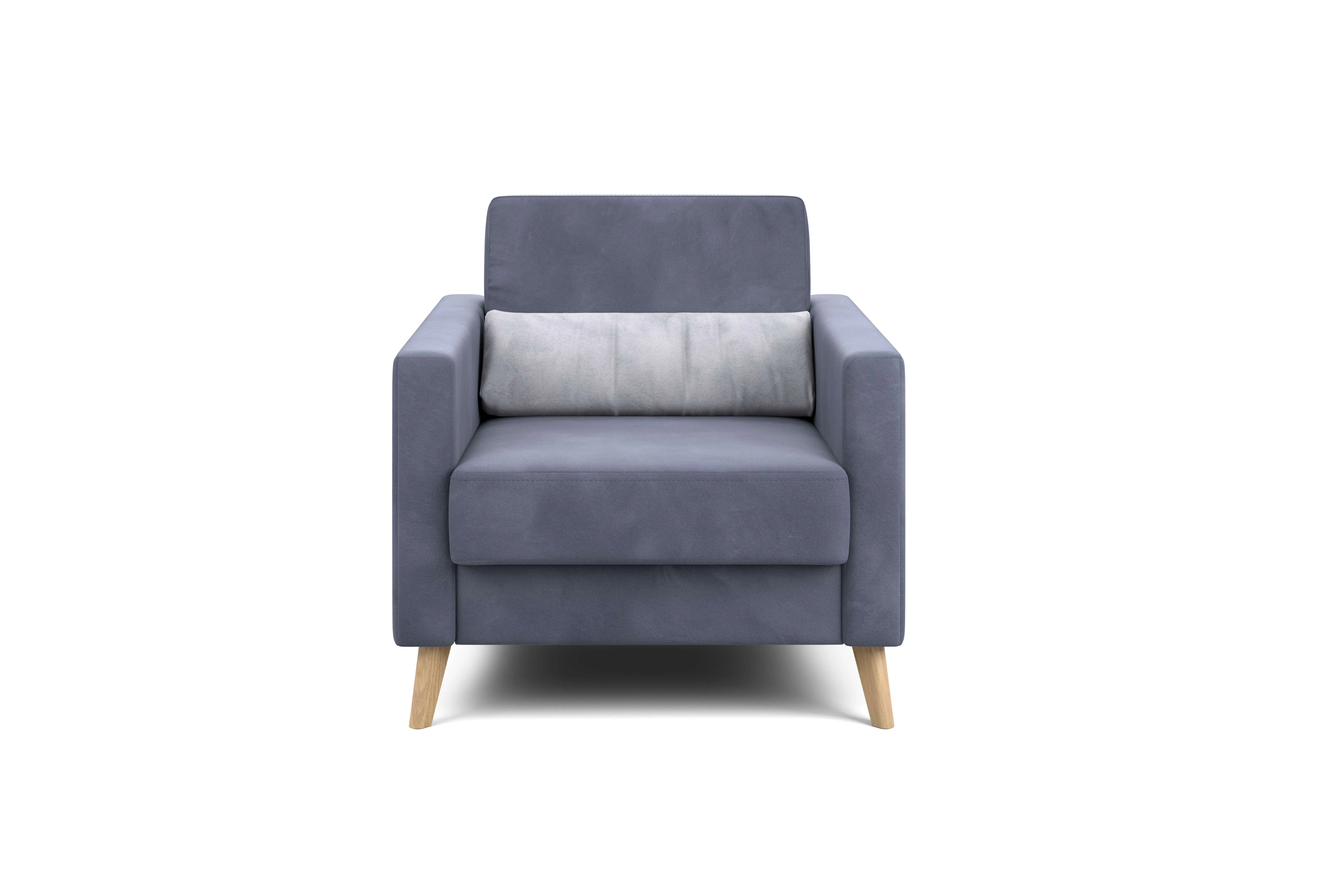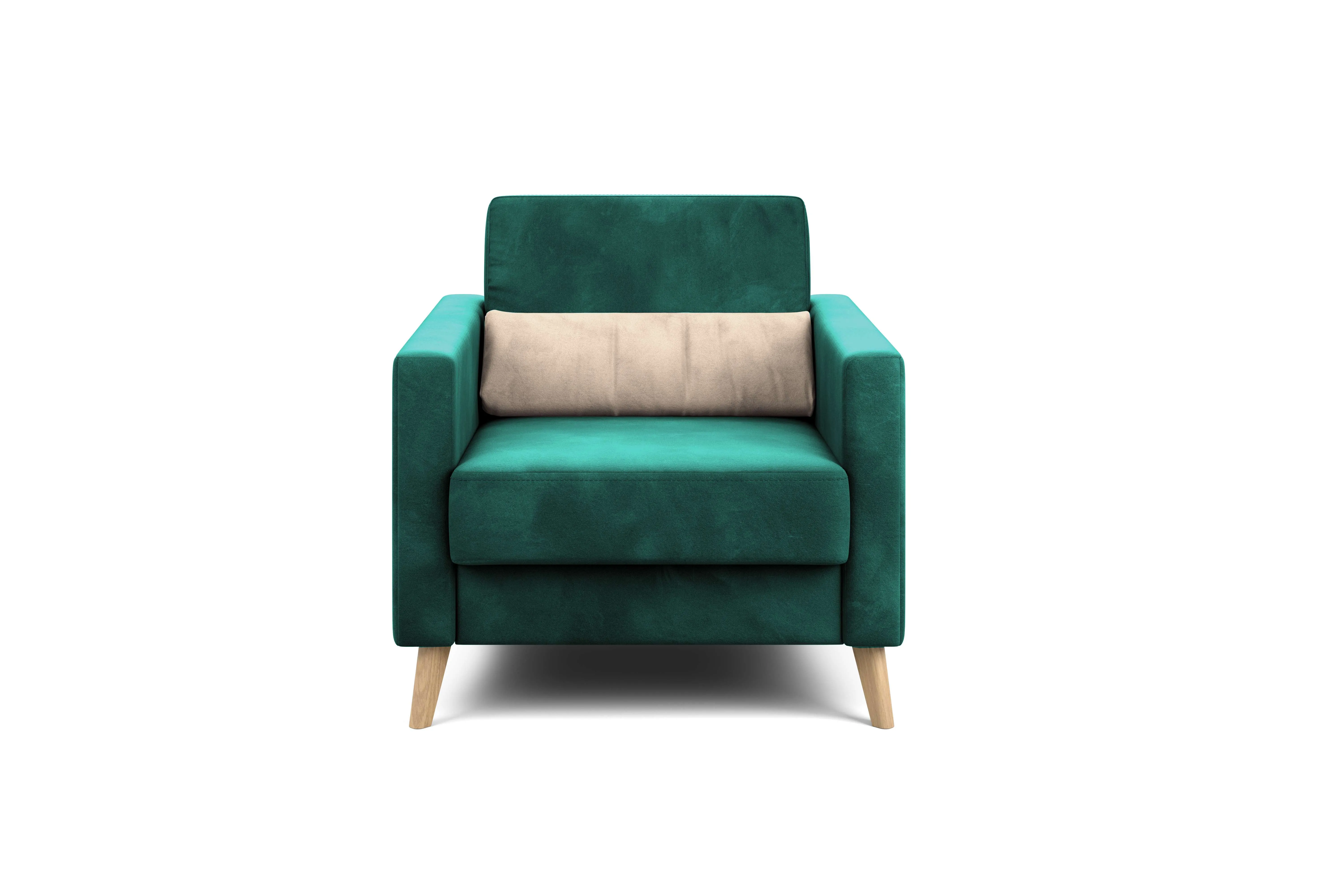 Кресло имеет простой и элегантный силуэт. Обивка из велюра не только роскошно выглядит, но еще и практична в эксплуатации, а также имеет отличные показатели износоустойчивости. Высокие опоры из массива березы придают креслу визуальную лёгкость, декоративная отстрочка на боковинах придает приятный объем. Подушки из велюра контрастного цвета входят в комплект.