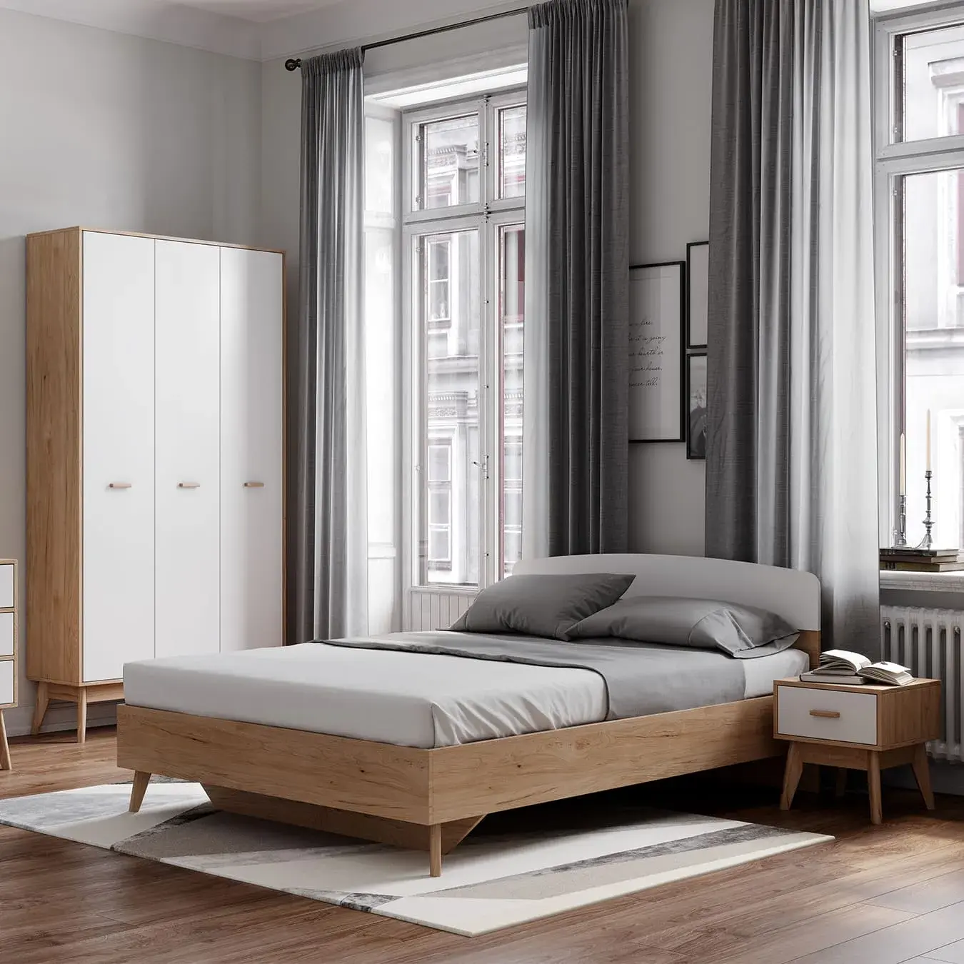 Двуспальная кровать "Калгари", выполненная в скандинавском стиле, станет гармоничной деталью интерьера спальни. Модель отличается простой и надежной конструкцией, в спокойных естественных тонах, без обилия декоративных элементов, со скругленными углами изголовья.