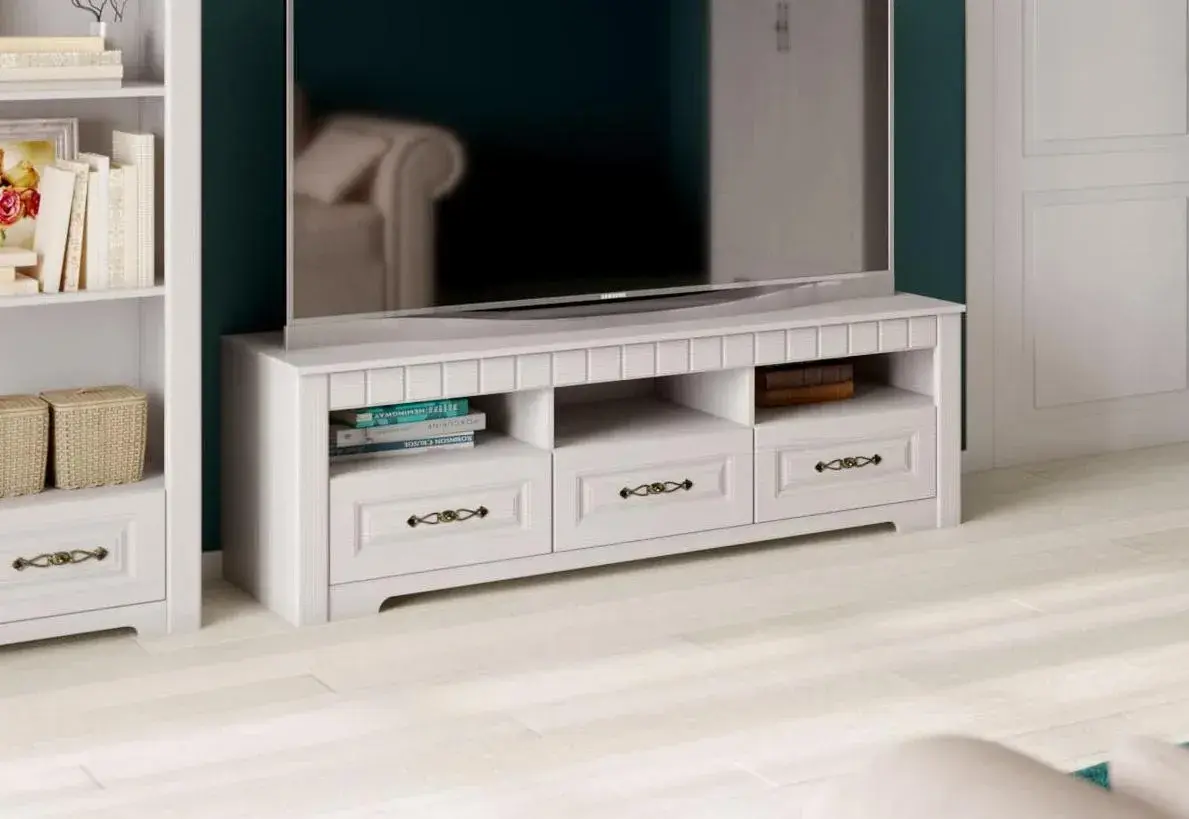 В серию "Прованс" входят: шкаф двухдверный, шкаф-витрина, стеллаж, комод, тумба ТВ, полка навесная.