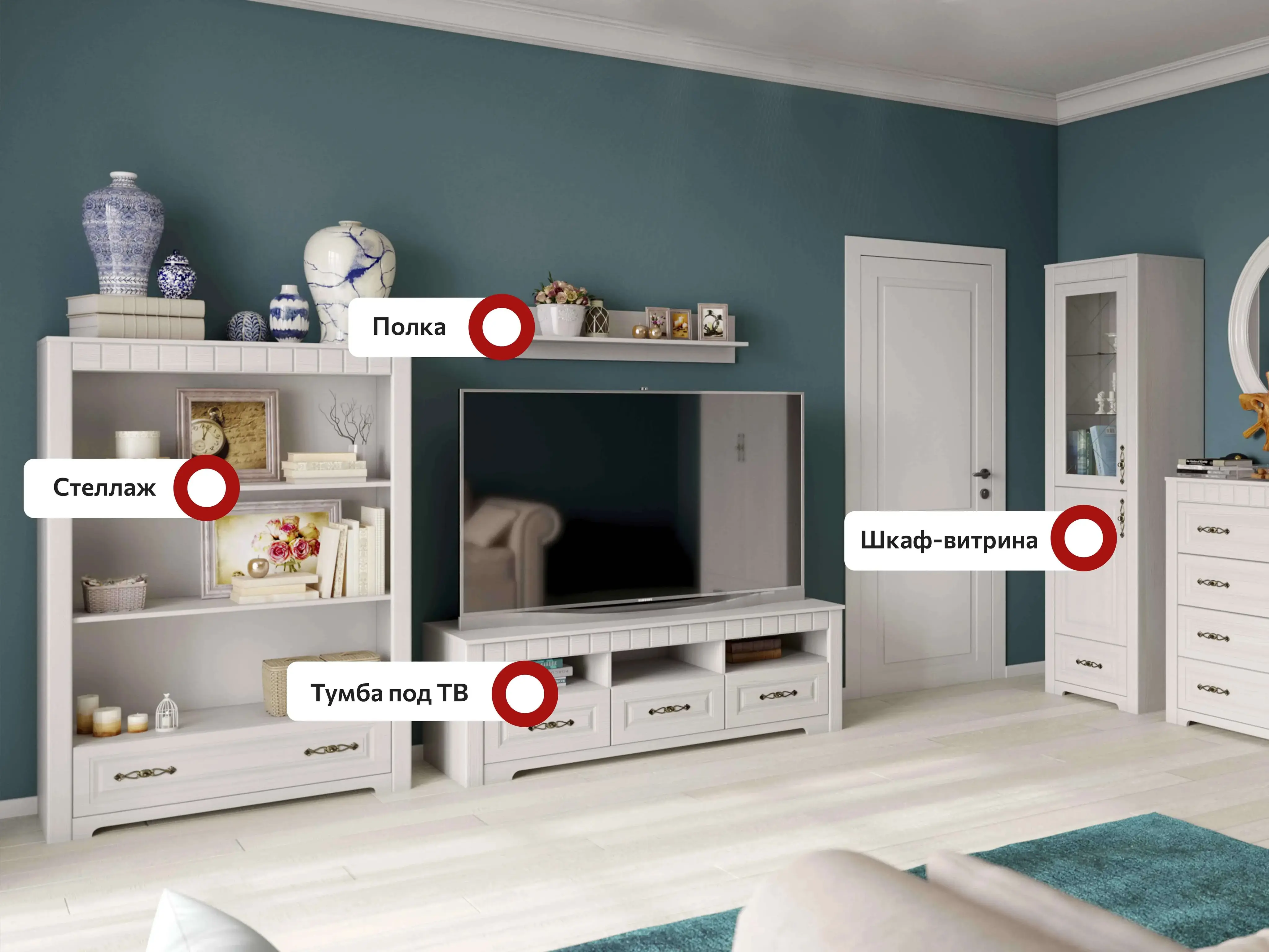 Модульная гостиная “Прованс” - это прекрасное решение для тех, кто хочет создать уютную и теплую атмосферу в своем доме. Она выполнена в стиле прованс, который характеризуется использованием натуральных материалов и светлых оттенков.