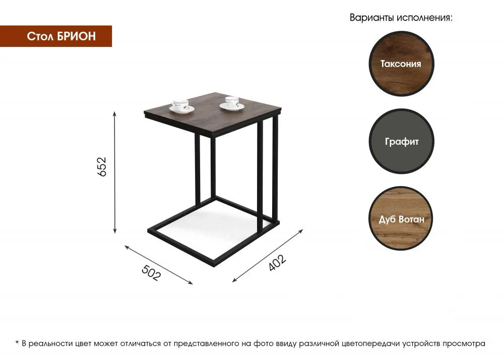 Приставной журнальный столик "Брион" на металлокаркасе выполняет не только декоративную функцию, но и выступает в качестве практичного элемента.