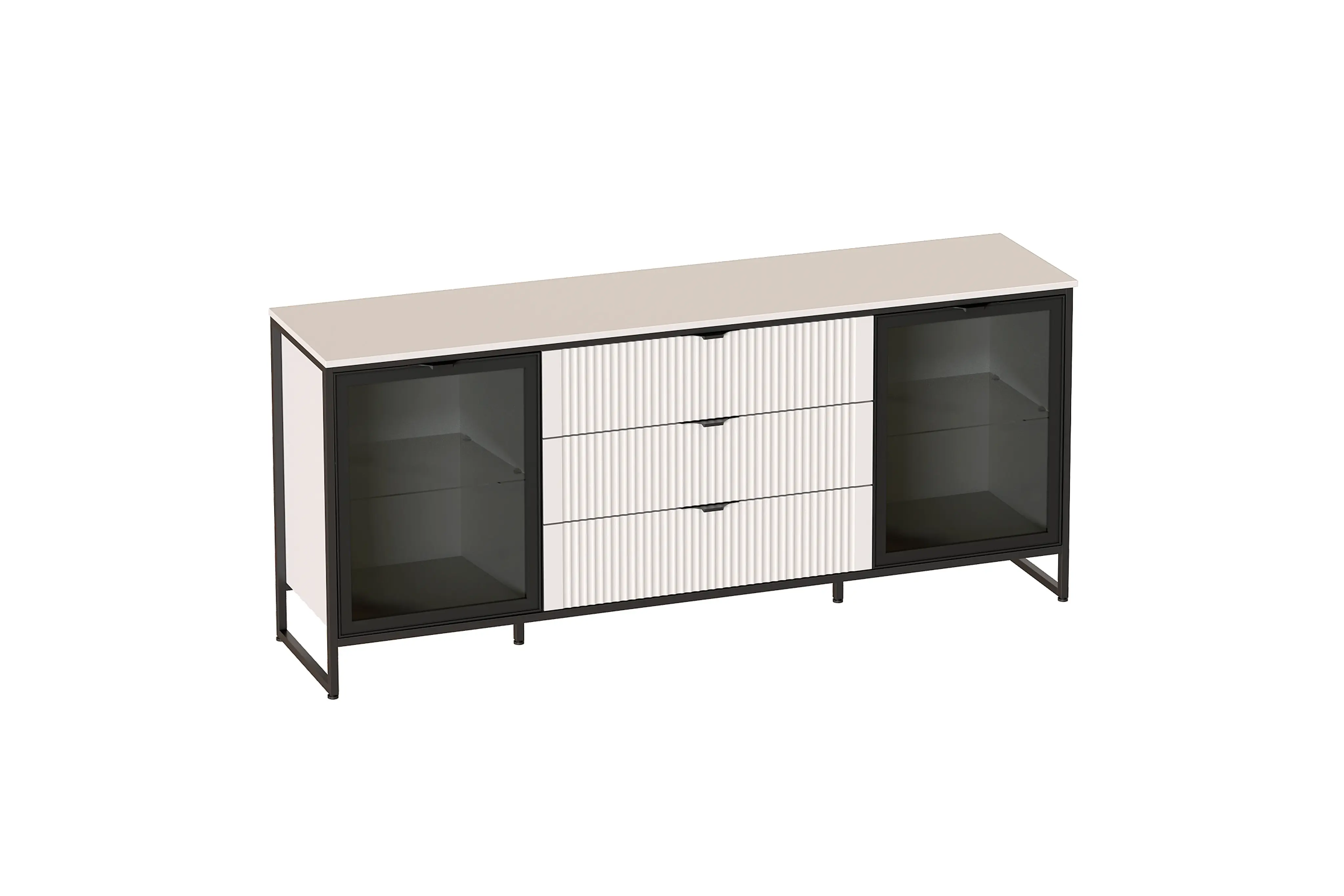 Коллекцию модульной гостиной "Нора" отличает современный оригинальный стиль. Декоративная продольная фрезеровка на фасадах из МДФ и опоры на металлокаркасе цвета соответствуют модным тенденциям этого года в ведущих зарубежных коллекциях.