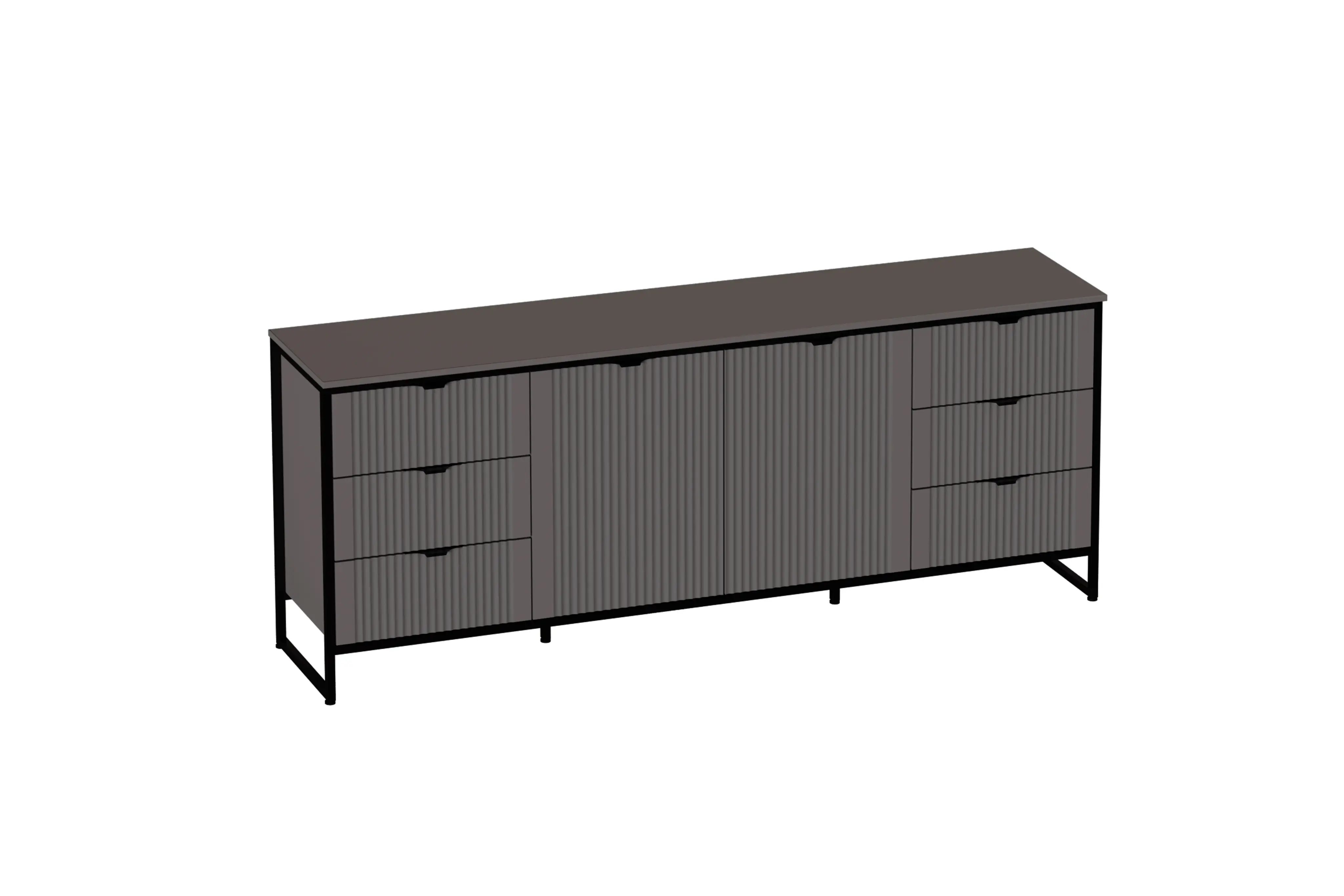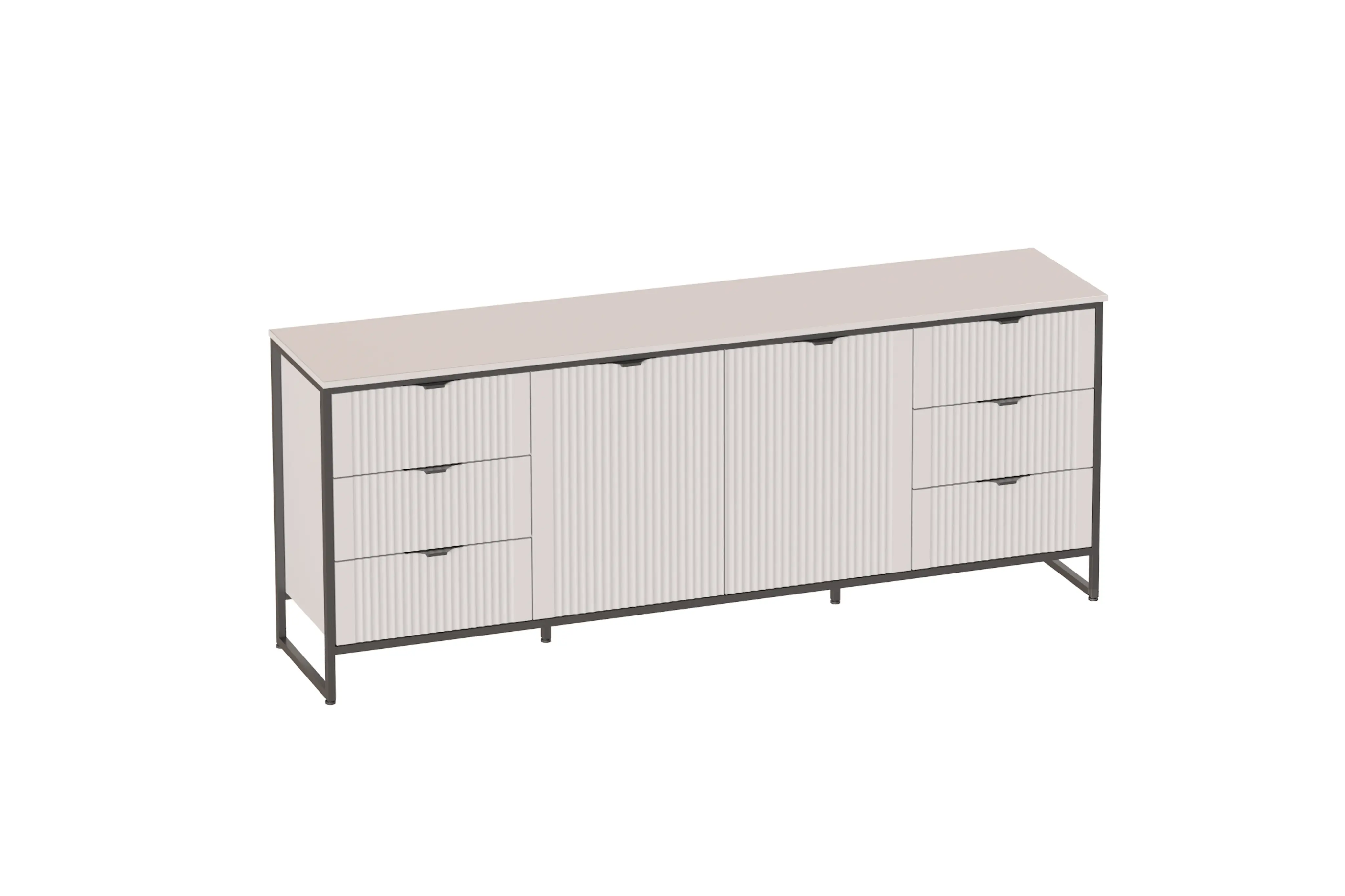 Тумба с 2 дверями и 6 ящиками "Нора" на металлокаркасе позволяет удобно хранить вещи и поддерживать порядок в комнате. Она выполнена из безопасных, качественных материалов (лдсп и мдф), что гарантирует долговечность и сохранение первоначального вида на протяжении долгого времени.