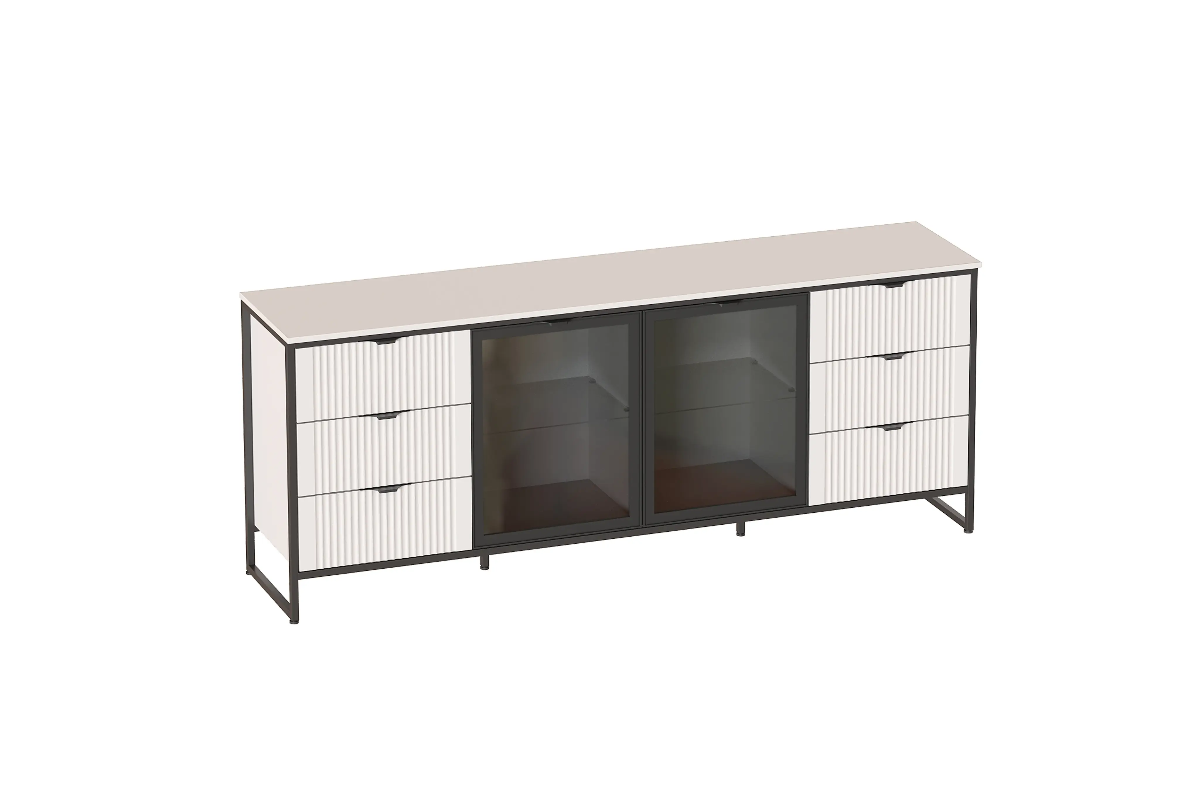 Коллекцию модульной гостиной "Нора" отличает современный оригинальный стиль. Декоративная продольная фрезеровка на фасадах из МДФ и опоры на металлокаркасе цвета соответствуют модным тенденциям этого года в ведущих зарубежных коллекциях.