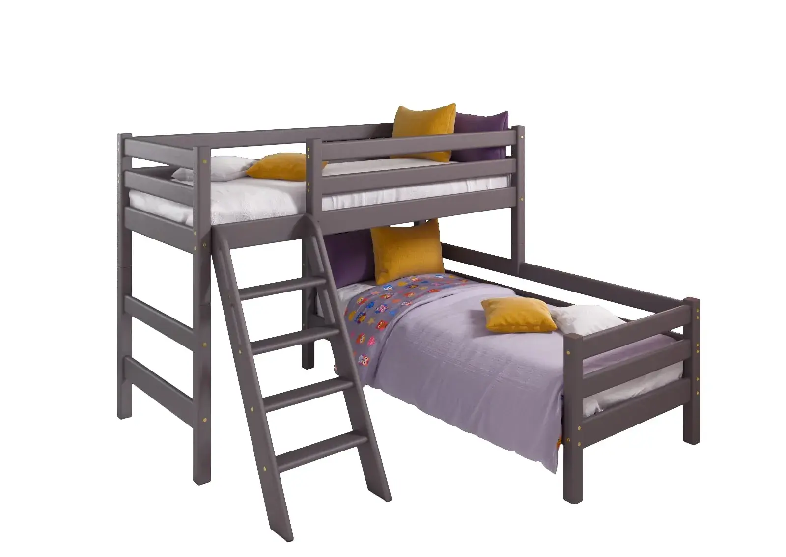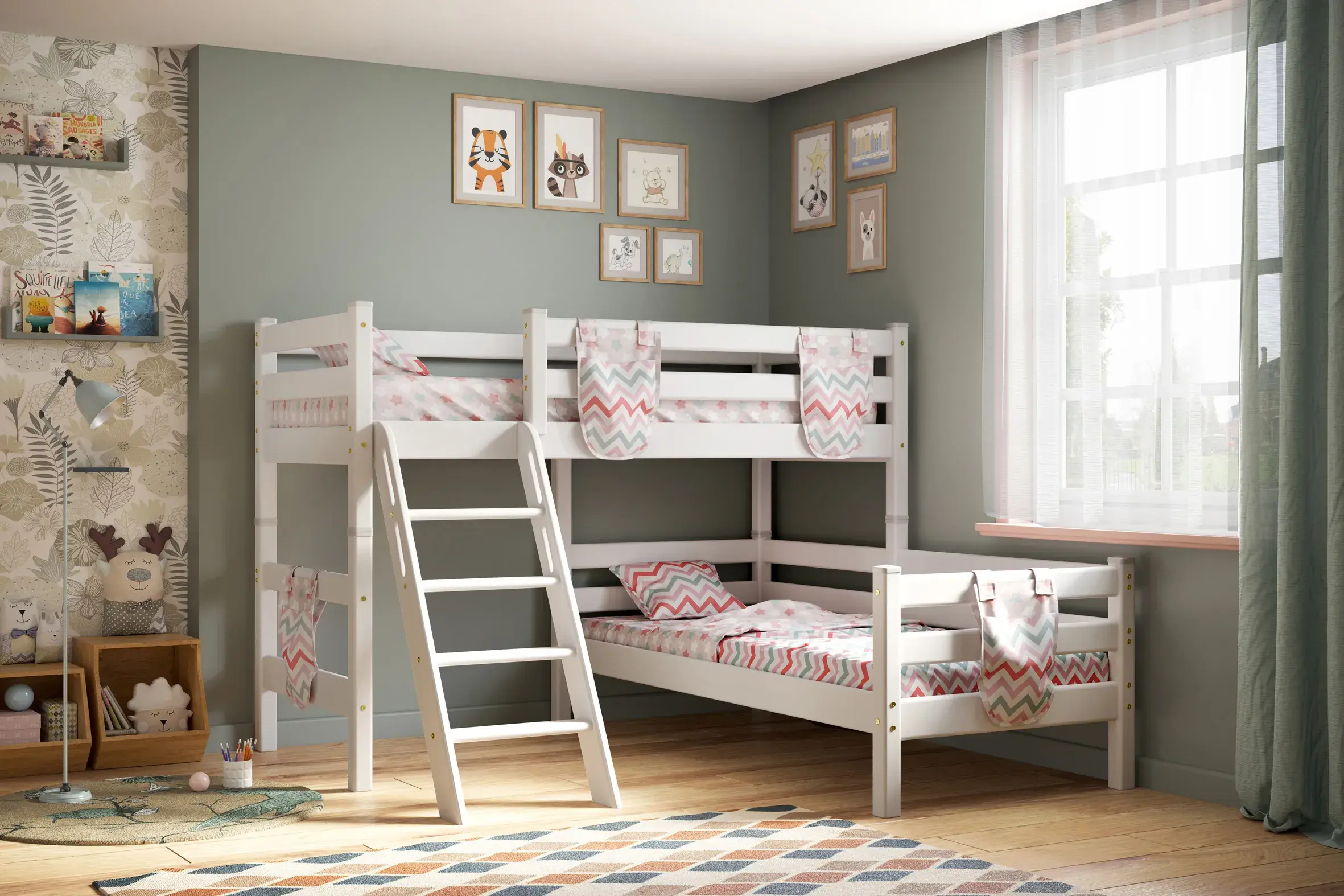 Вариант 8. Угловая кровать "Соня" с наклонной лестницей — один из примеров идеального сочетания практичности, оригинальности и долговечности. Цветовое исполнение подходит сразу для нескольких стилей, а габариты — для комнат разной площади. Мебель для детской создается из безопасных материалов с отличной износостойкостью.